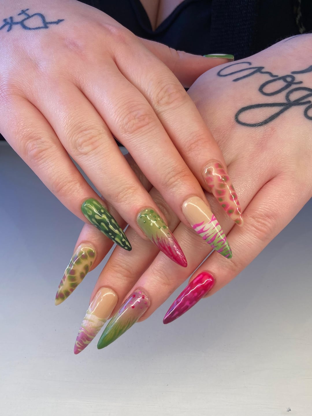 So much fun creating this set with just a mood board as inspo! Nail tech – @the.talon.agency 🥰💖💚 by iamthelizardqueenok