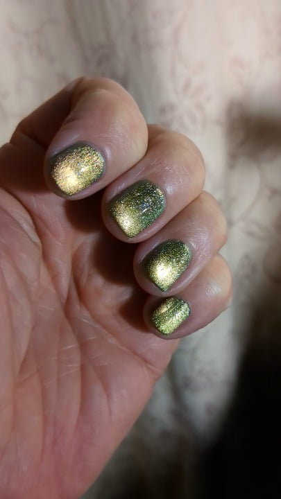 Exceptional, lovely to use, magnetise and most of all look at…check out this wonderful polish. It dries quickly, which is a big bonus with magnetic polish.💛😍 Fantasic golden bubbles which shift to a lovely light green metallic sparkle. More pics in comments.