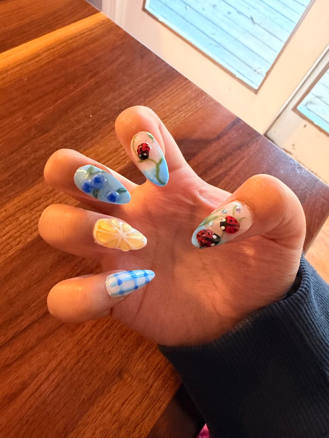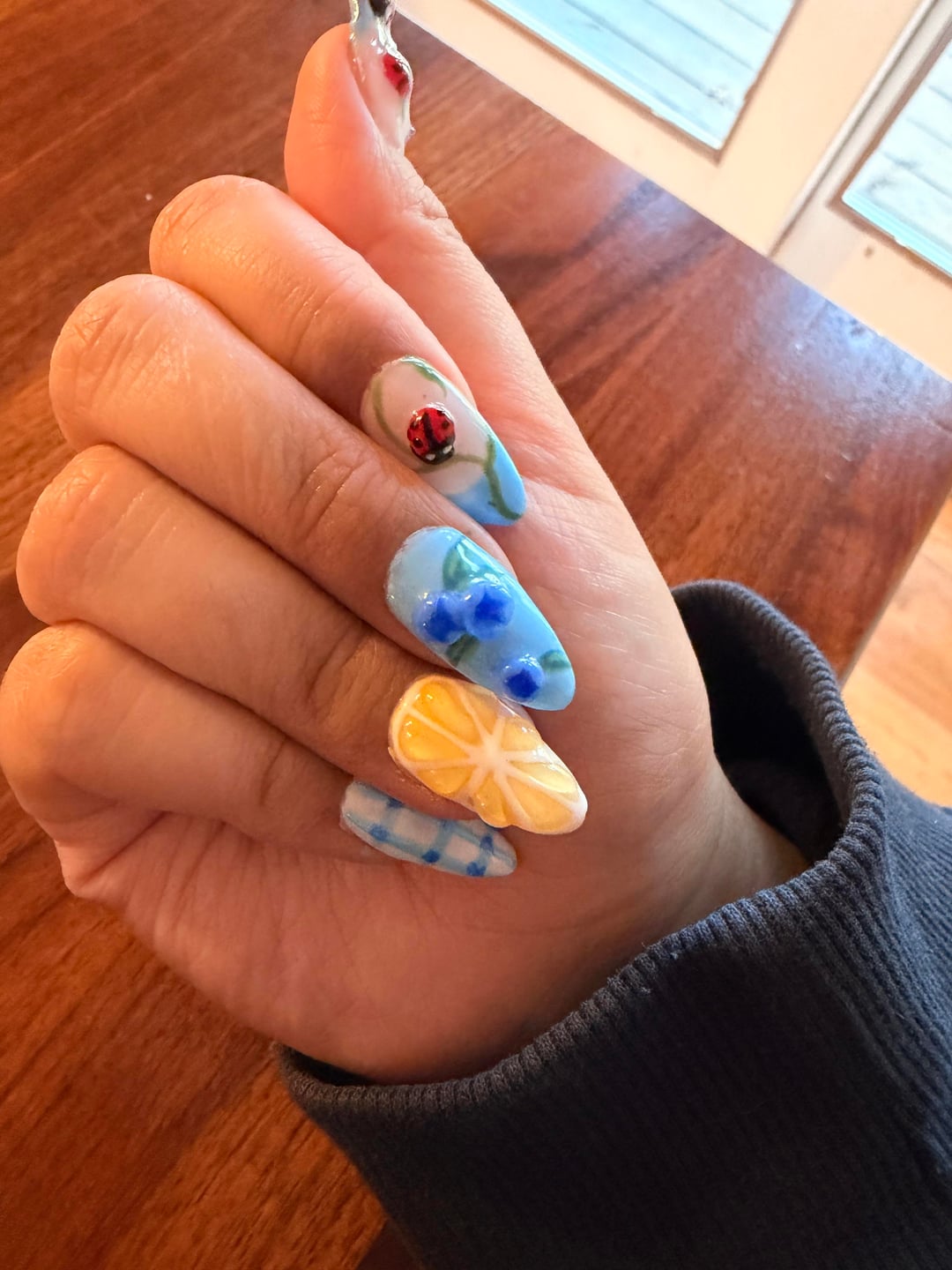 They’re so cute but please be careful around your cuticles!!! It looks like you have a lot of overflow on your cuticles and curing before proper clean up cause an allergy!