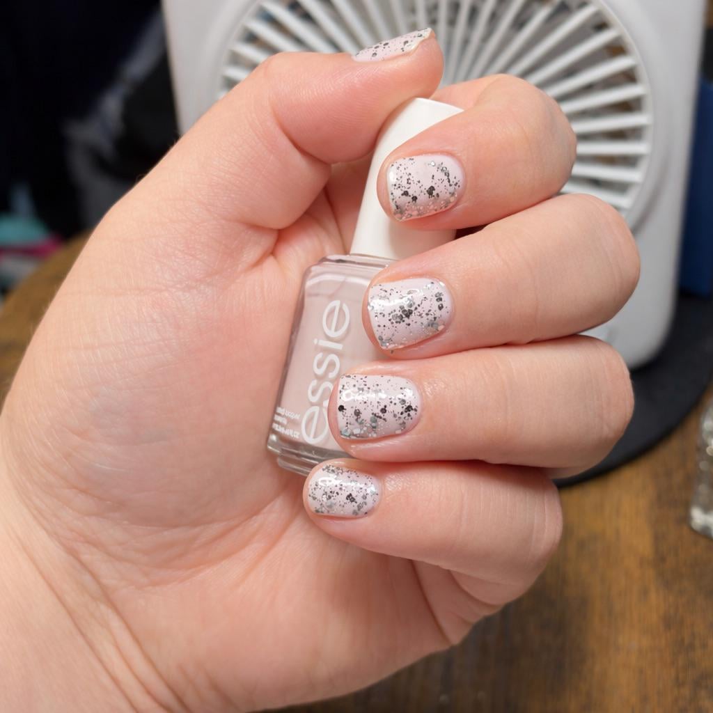 To my surprise, it’s fussy but not messy. With a light hand and a bit of brush floating, two coats went on just fine. It is quite sheer though, so I added a little sparkle with Set In Stones.