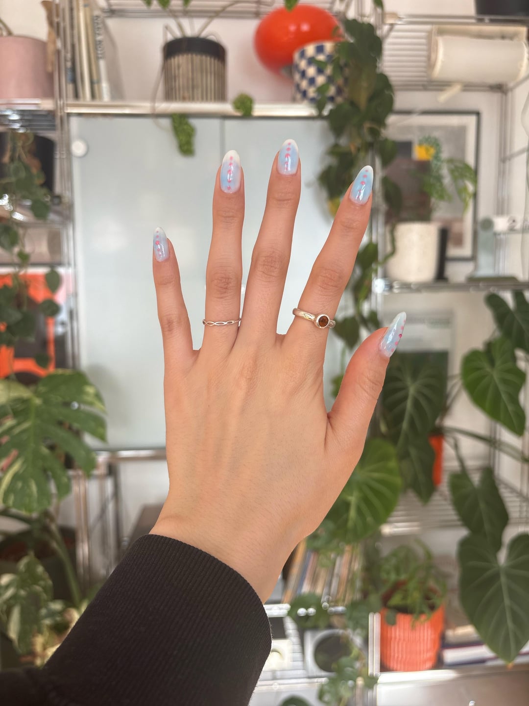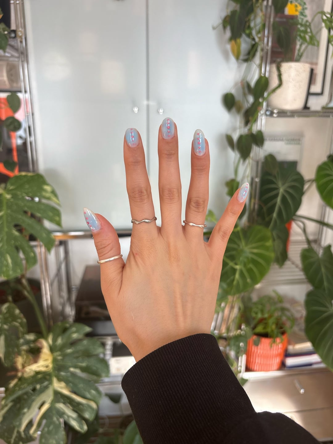 Tried something new! It’s a little bit more simple than what I wear these days but I really love them so far!! 🩵🤍