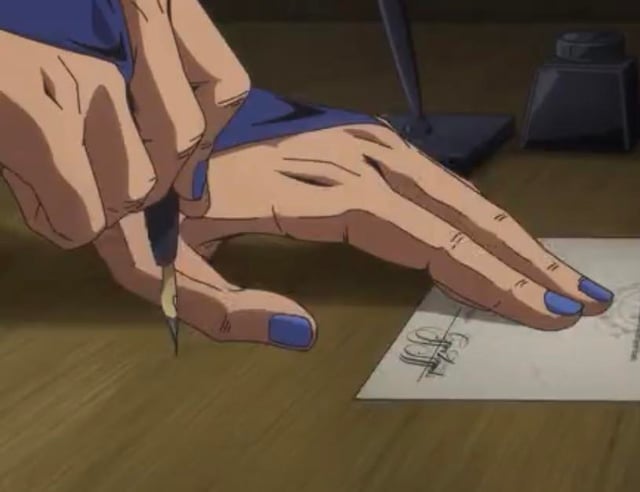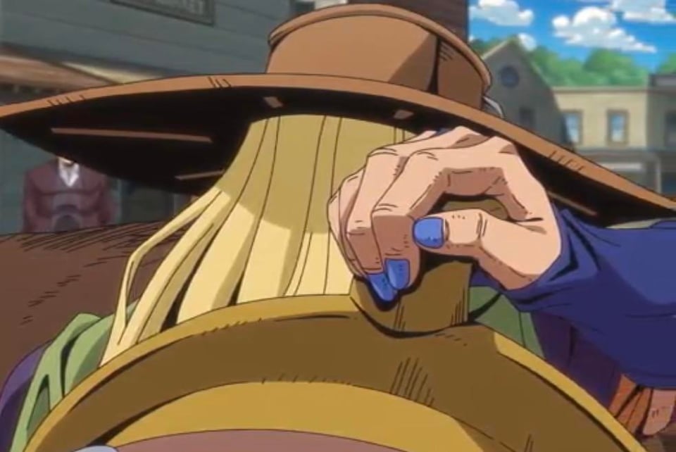 first episode of steel ball run was so good but his manicure kept grabbing my attention. color match for gyro zeppeli’s nails? beautiful rich cornflower blue i love it