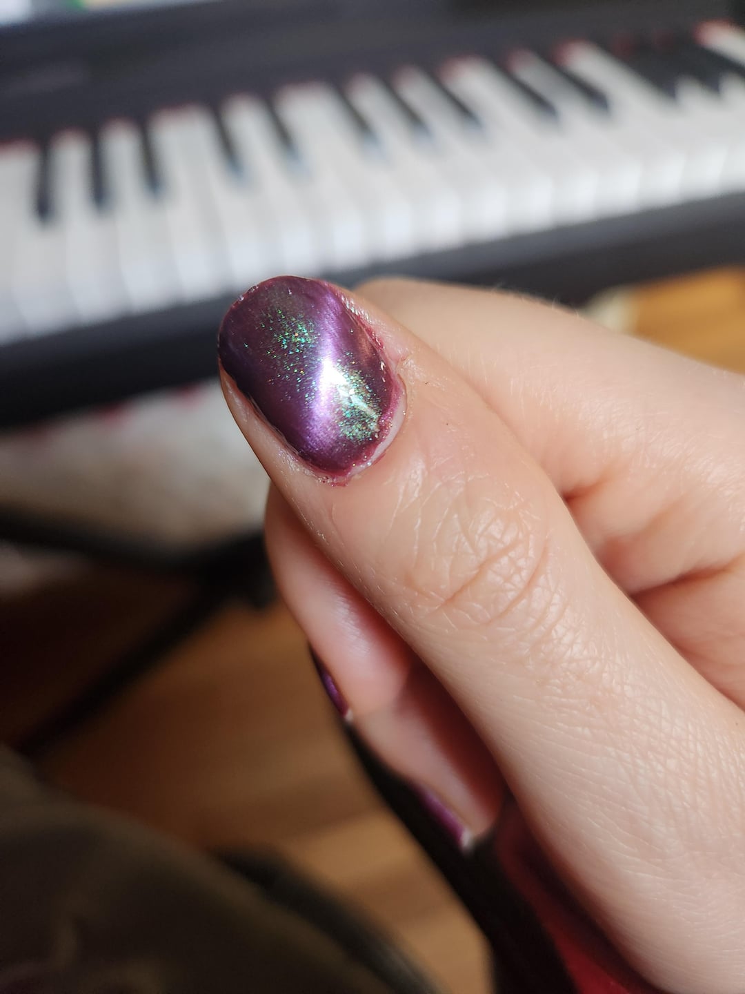 Now I'm thinking about getting another unmag polish that has this mauve-ish base with blue or green sparkles, or just using Ghoul's Garden without magnetizing! I've seen a couple like Holo Taco Cool Ranch Doritos or mayyybe Mooncat Root of All Evil?