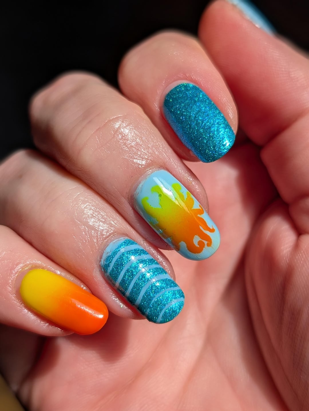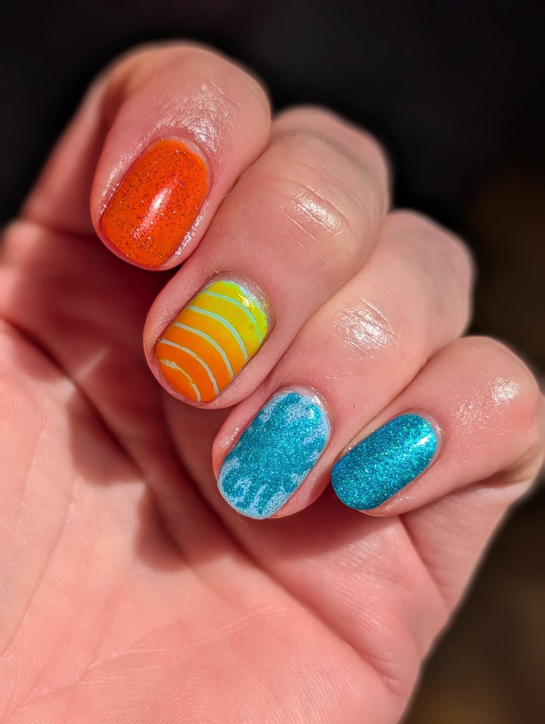 Who's ready for OBERON DAAAAAY 😎 Jellies by Pretty Serious (rip), sparkly teal is Bond, James Bond by Dreamland, and Cerulean Reflective Topper by Fancy Gloss by BattleSwallow