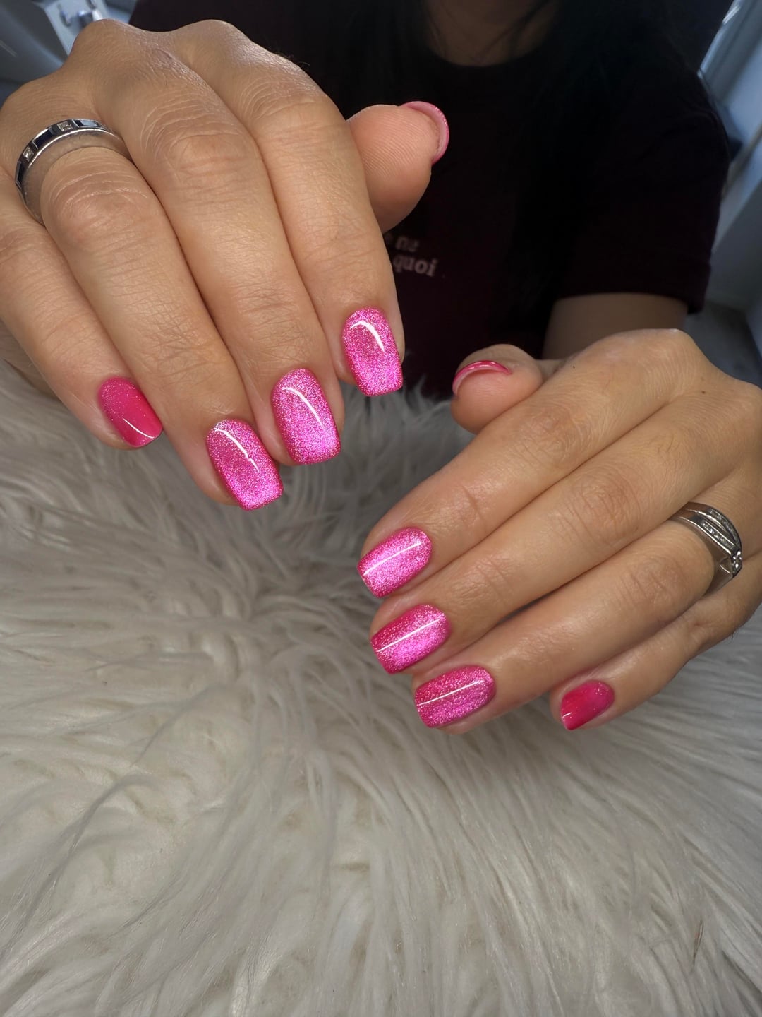 We decided on this gorgeous barbie pink coarse cat’s eye gel.