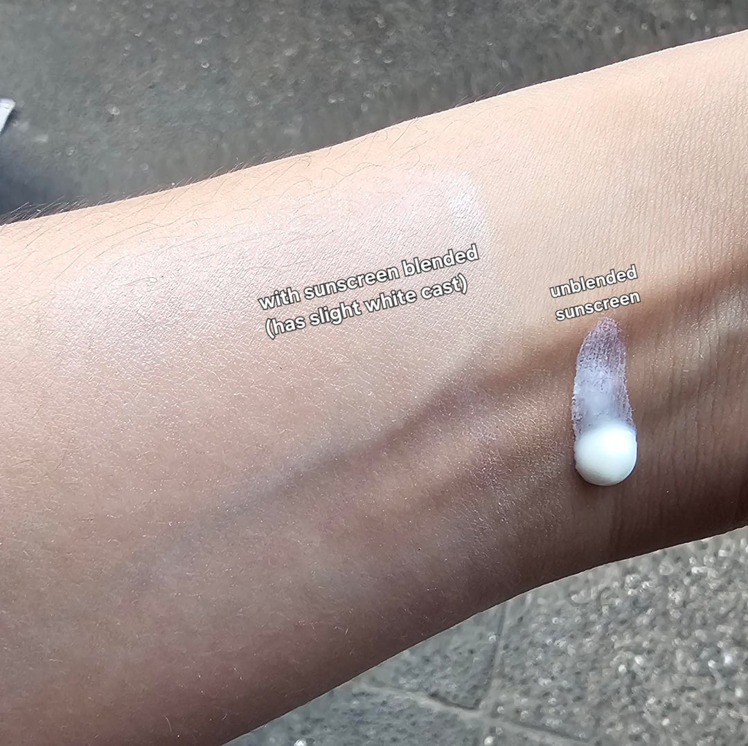 * Harder to remove with gentle cleansers. This can be a pro or a con, honestly. I tried removing it with a Dove bar soap (soap-free type) and could still smell the sunscreen on my arms after. But when I used an SLS-based cleanser, it came off properly.