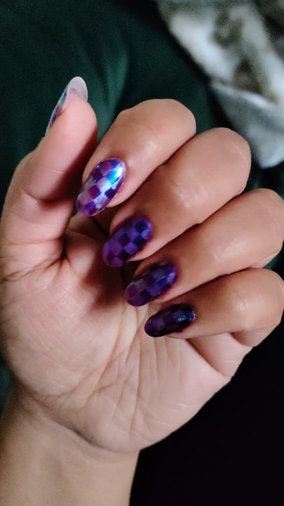 I’m not really happy with the way the chrome turned out, I’m still learning how to use the powder with stamping and I don’t like the way the color looked, but I still think it’s an interesting look.