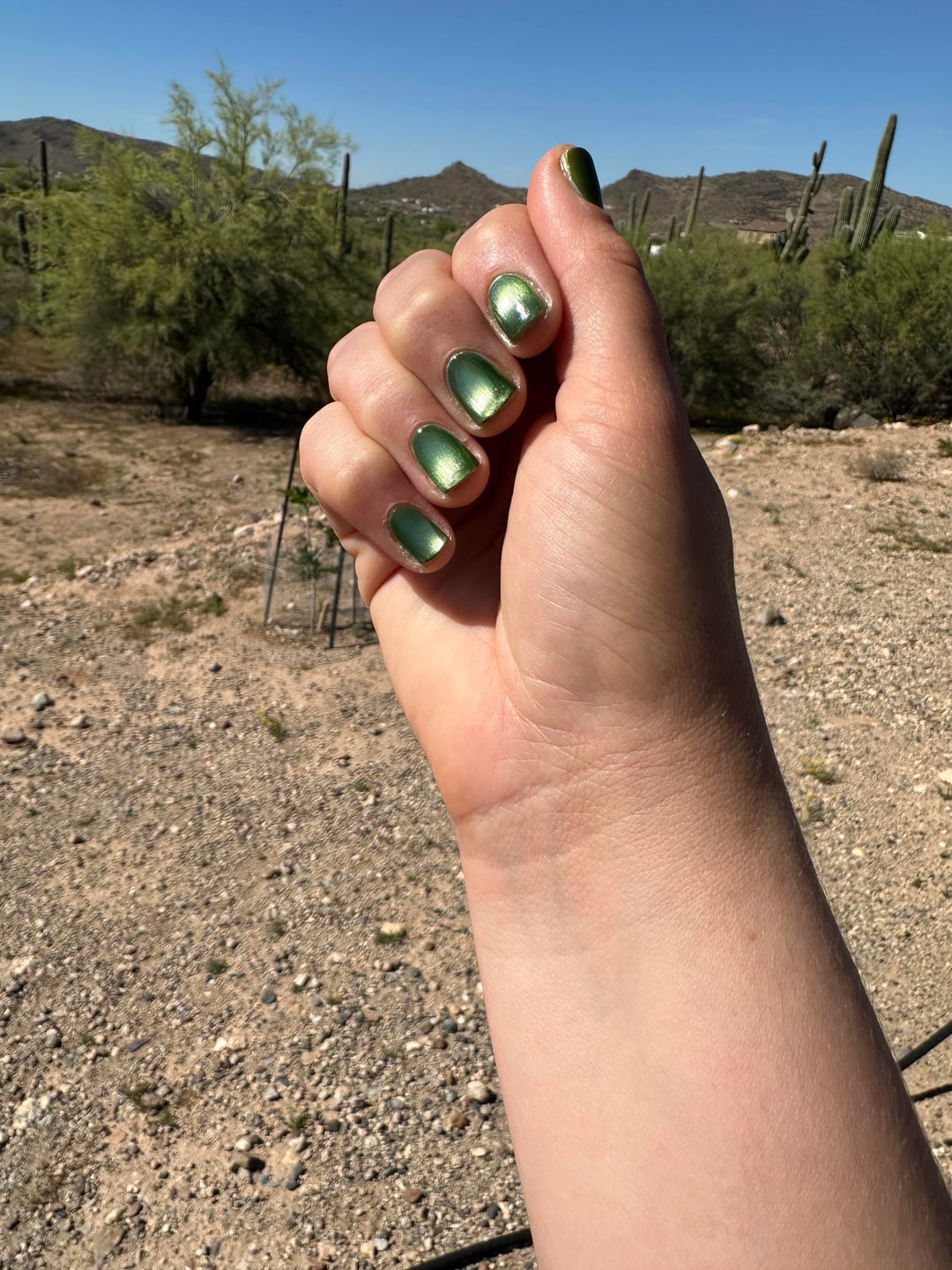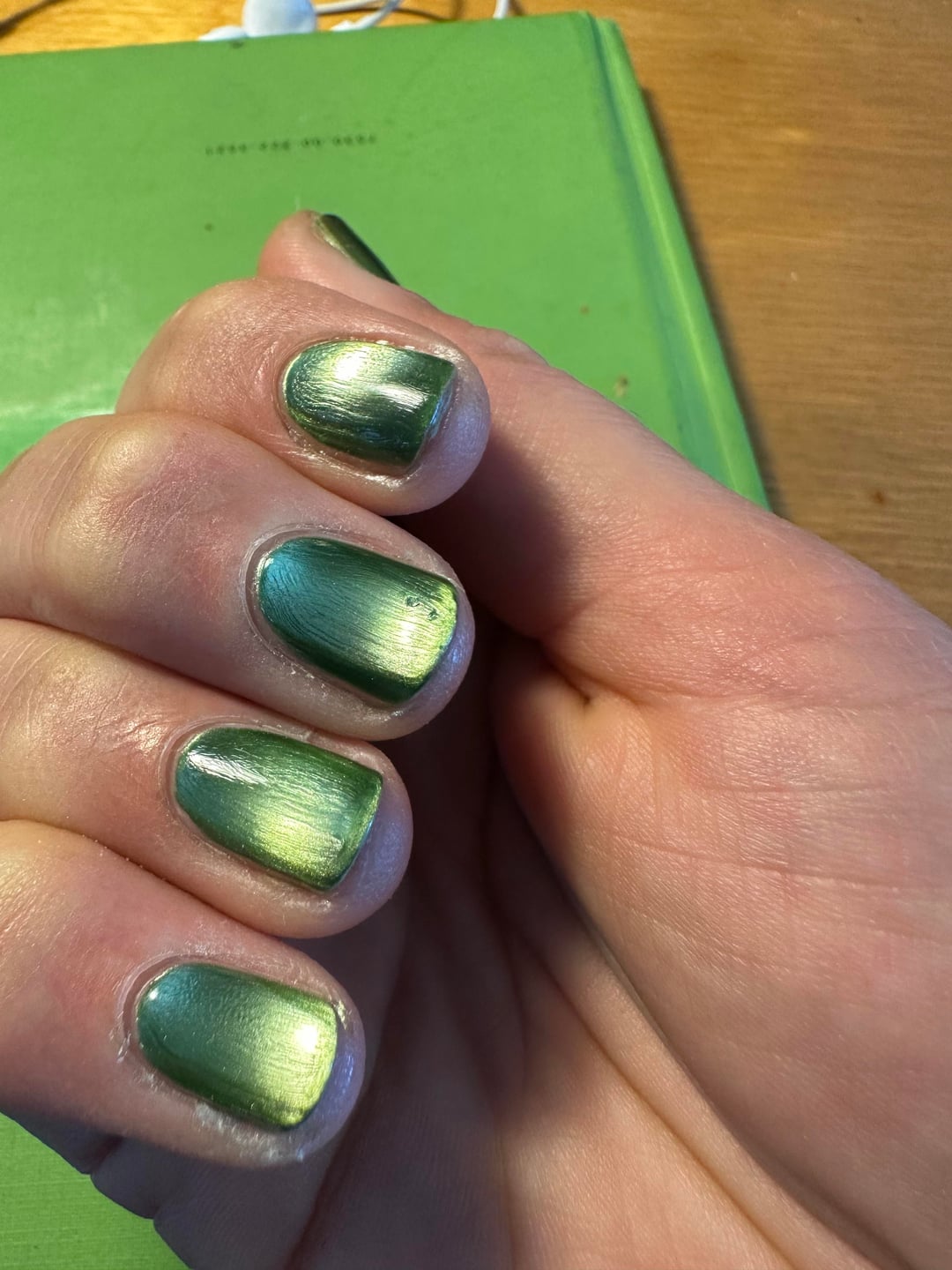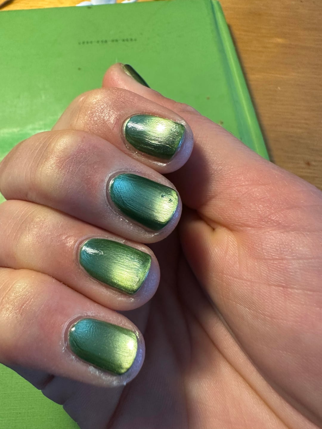 Did my left hand first and was so flabbergasted I switched to a different top coat for my right hand, which I’m still not in love with (though the bump on the middle finger is me not being careful).