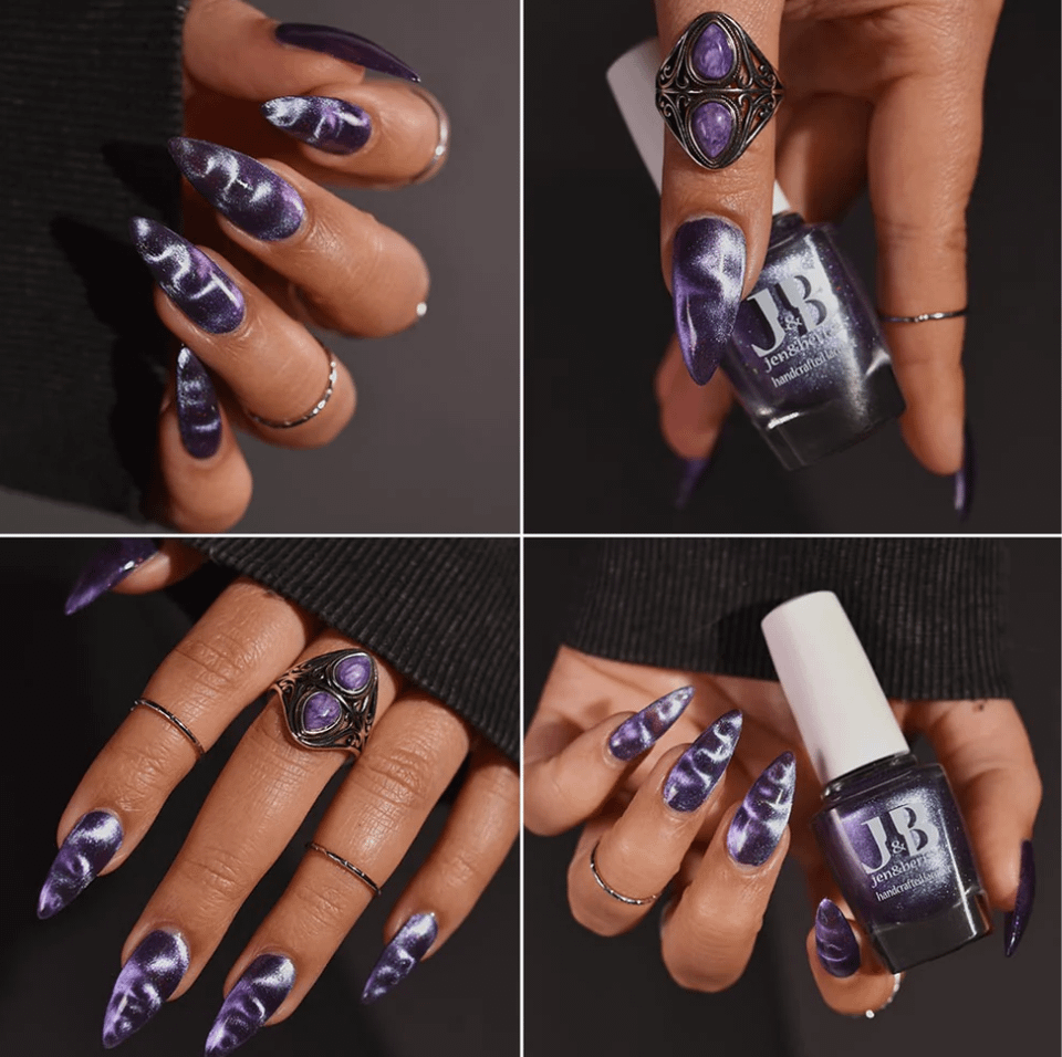 Jen&Berries has her own fancy magnet 5D magnet system called snazzy mag that has all these fun pattern plates. I haven’t personally tried it because I can barely get a cat eye on my nail let alone anything fancy like that. I’m sure some of the mad scientists here can find a way to do it without buying into the system.