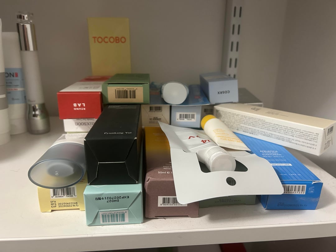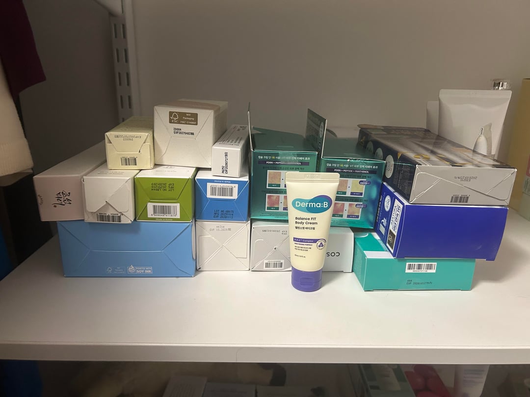 Note: I know this is a lot of product but I do have a family of 5 and I go through product quickly because I use over my entire body. I tried the vast majority of these with a few unopened boxes, usually the things sent for free with order. I use it, try to be as sanitary as possible in using it, and close up the product and store it back in its box. It’s not perfect, product will go bad faster if opened. I know. I don’t feel pressured to use product I don’t love but I keep it as a reference point. The pictures intentionally obfuscate what I purchased, I’m not reviewing them deeply I am just showing the existing diversity.