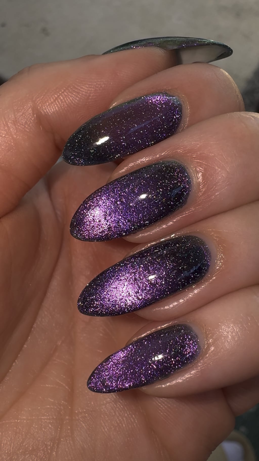 I have this and I wish I could love it but the reflective glitter makes it look chunky and enrages my brain 😔