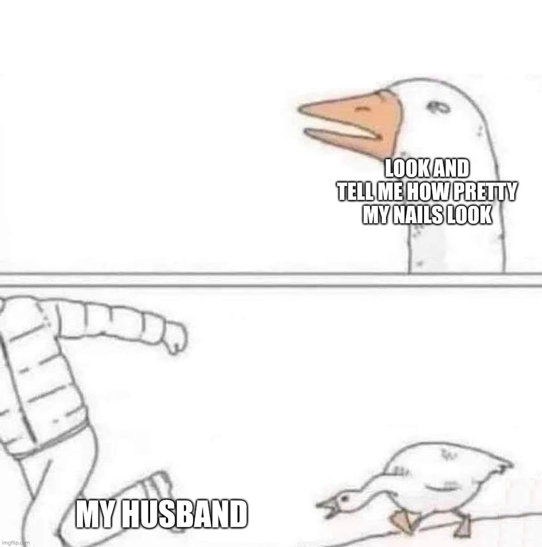 The goose one is me after I spent 838483994 hours spinning each individual finger in my glass bead spinner and can’t help my husband with dinner bc my nails are stil wet