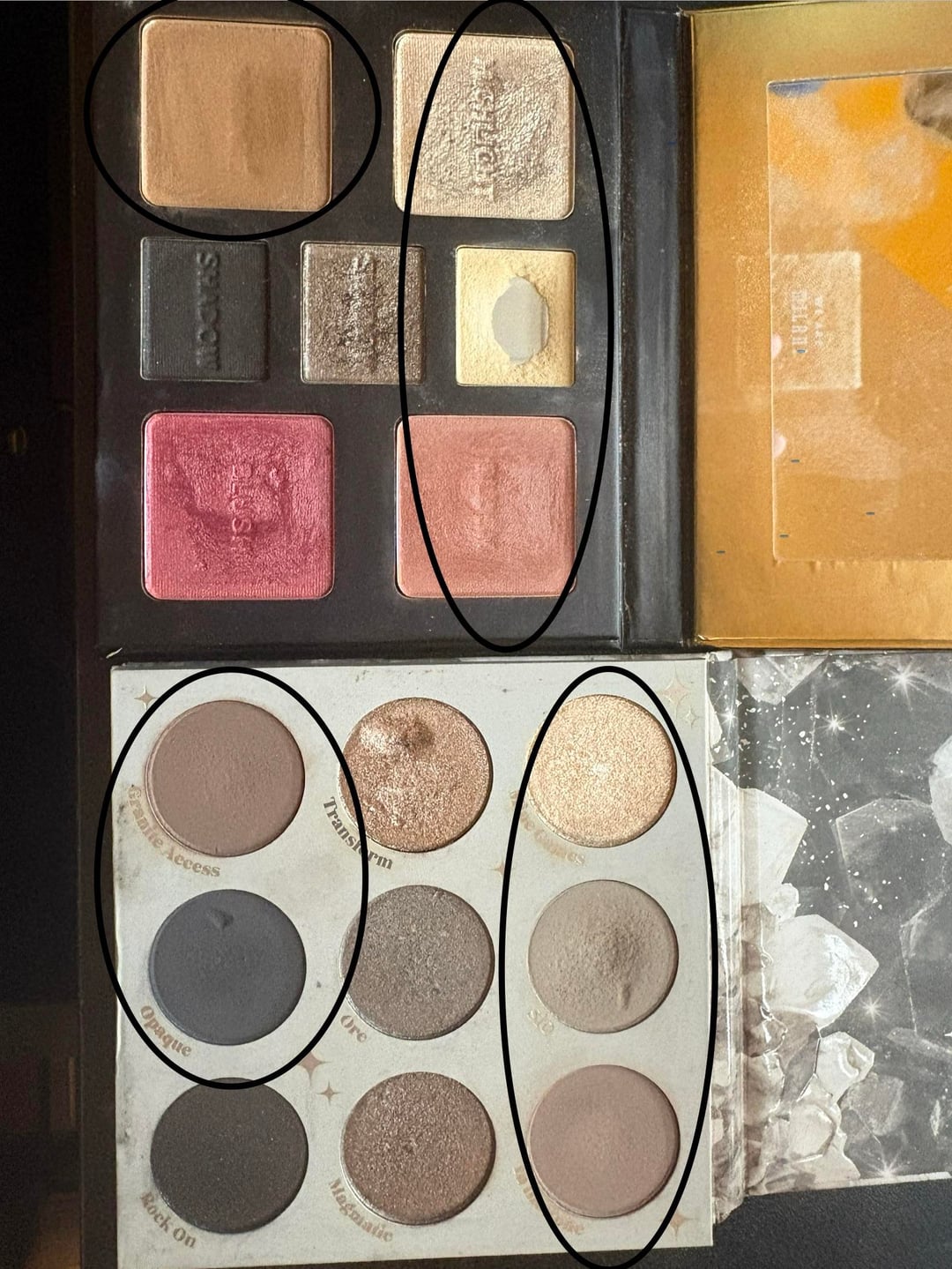Been about 2 months since my last update. In the palettes, the shades I’m currently panning are circled. List of products will be in the comments! by foxy_baby2