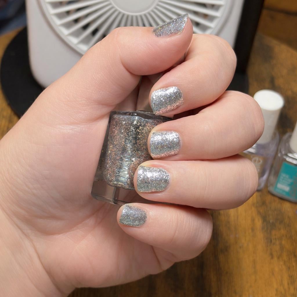 My friend let me borrow her bottle, and I loved it so much I ended up getting my own. It’s one of those shades that’s really hard to capture in a photo, or at least it is with my iPhone Air since the close-up focusing isn’t great. It reflects whatever ambient light is around, and under my full-spectrum grow light you can see all three tones bouncing back from the lacquer.