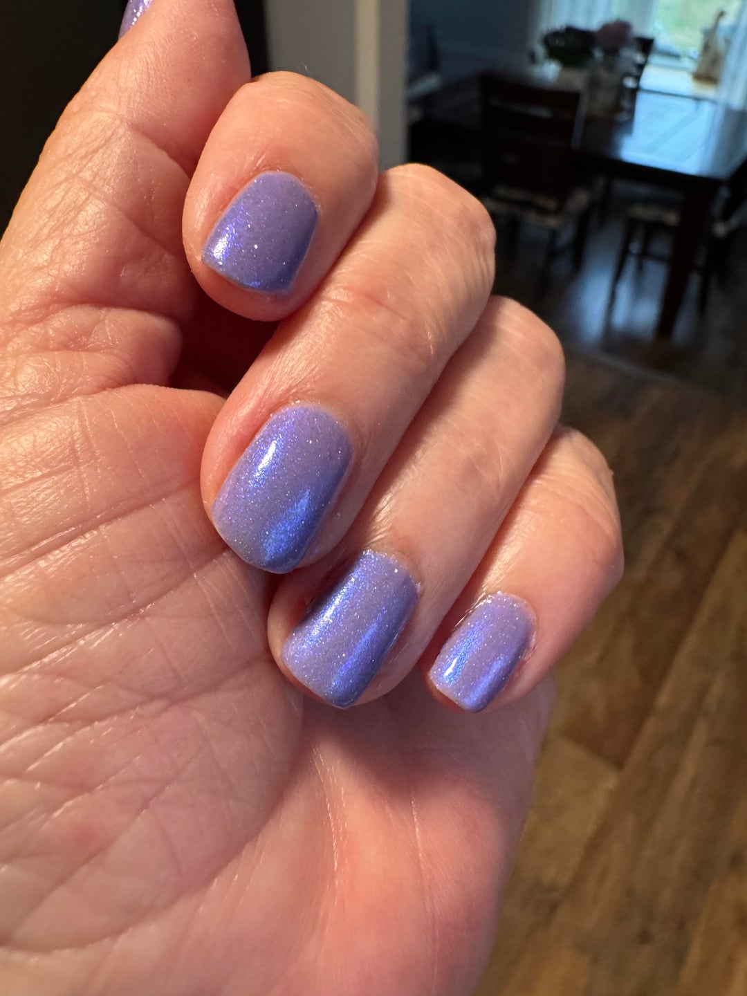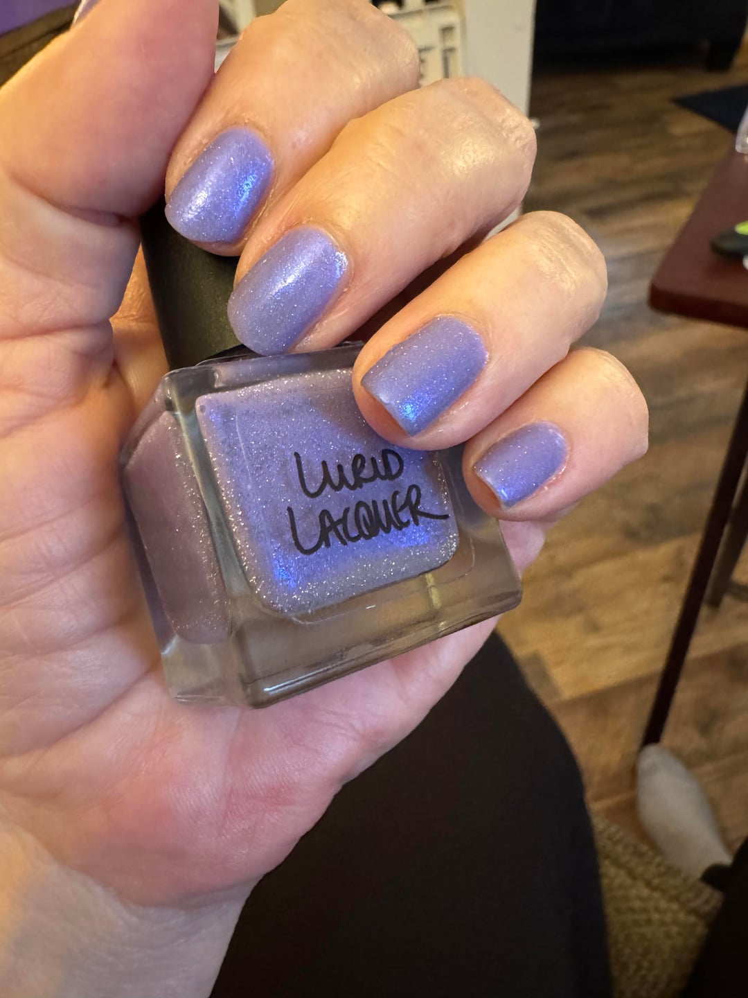 Periwinkle is the ribbon color for esophageal cancers, which I was recently diagnosed with. This is Lurid Prototype 1BP, it’s close enough to periwinkle for me, and it has the most subtle reflective glitter (I love me some reflective glitter-it’s like a little gift when the light catches my polish). My staging ultrasound wasn’t great, it’s grade 3, but I’m working my way through this crazy new life of mine. Doing my nails is so soothing right now. I’ve been looking at all your suggestions for periwinkles and I can’t wait to order some. I also want to thank everyone who has been supportive, this is such a positive and wholesome group 🥰 I appreciate you 🫶