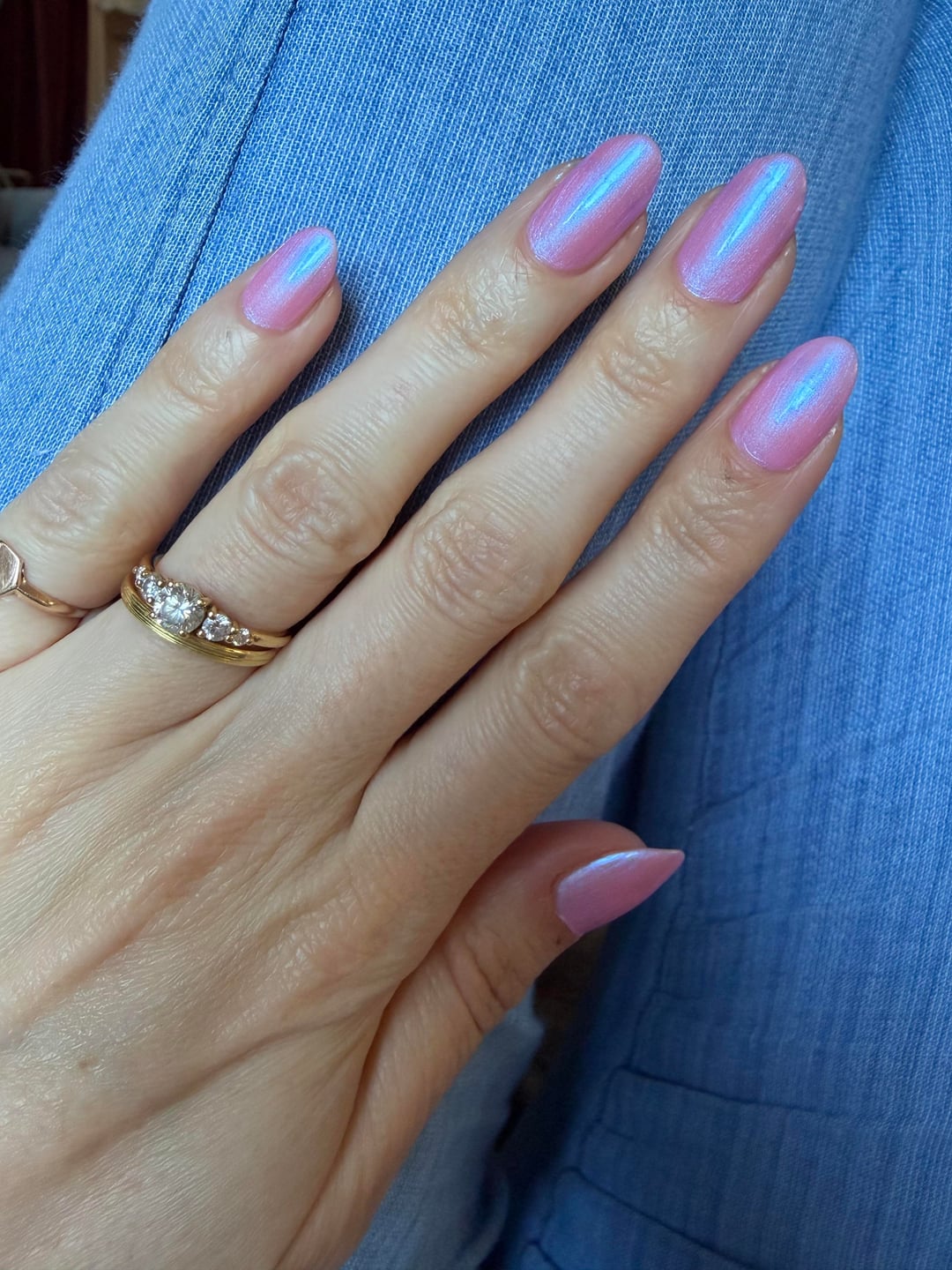 There’s two that might tinkle your fancy; [this one](https://angryharpypolish.com/products/ceaseless-mauv-els-purple-mauve-w-blue-shimmer-nail-polish-indie-maker-from-the-pnw-small-batch-lacquer) and maybe [this one](https://angryharpypolish.com/products/blue-skies-and-cherry-blossoms-sheer-pink-jelly-w-aqua-and-pink-shimmer-angry-harpy-polish-pnw-indie-maker-small-batch-lacquer)