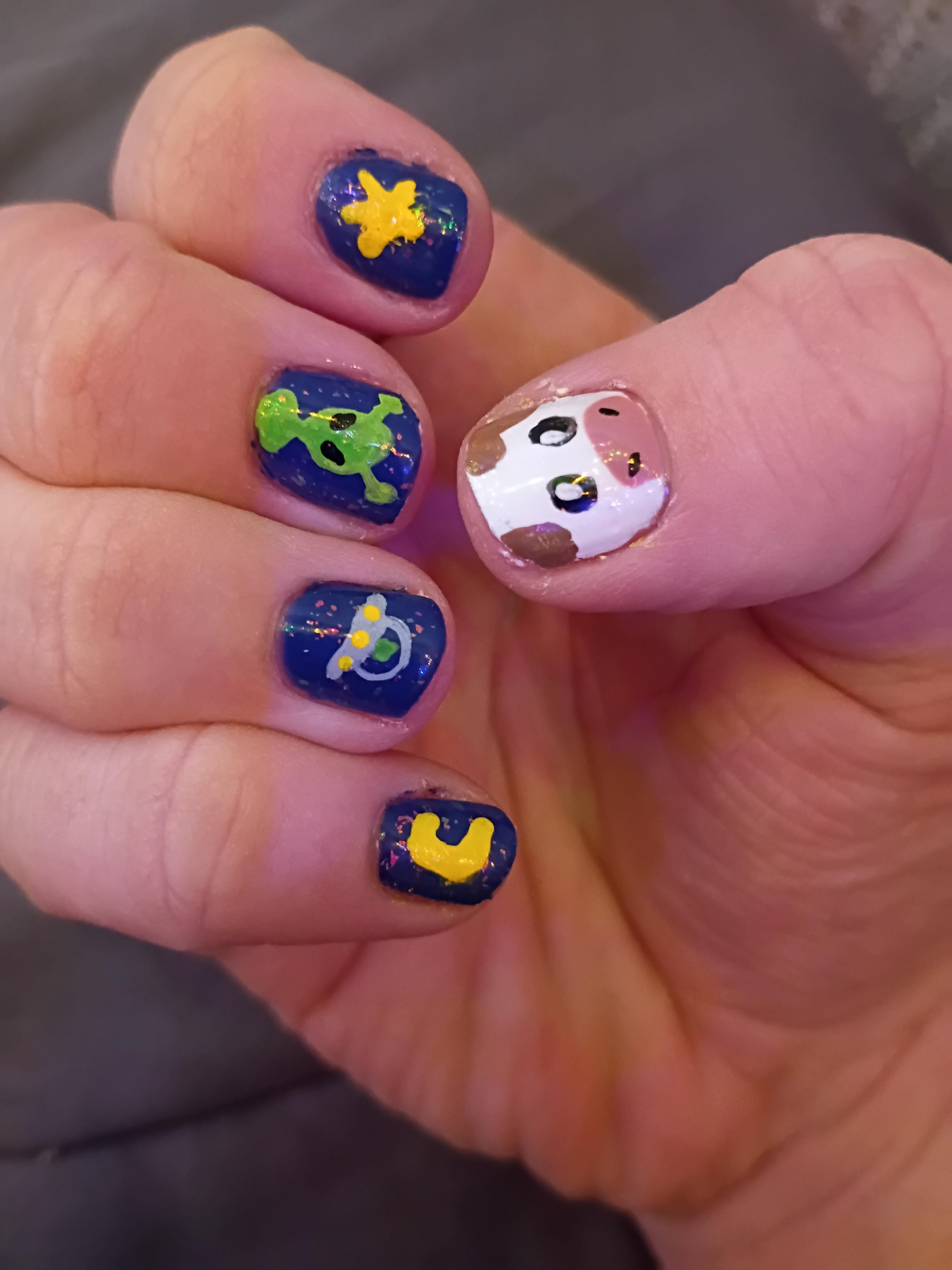 Alien, UFO, Star and moon, cow 🙂 it has a crystal top coat too so it's sparkly