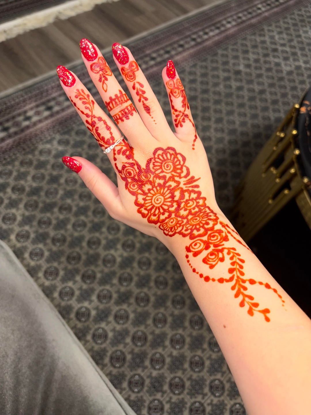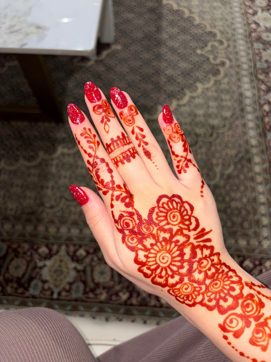 My lovely cousin did my henna today (bit late for eid but who cares) and I did my nails!! Just wanted to show it off ❤️ by Middle_Spare_1406