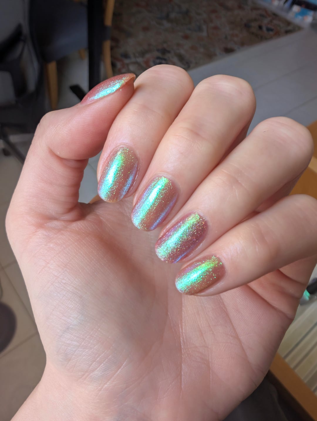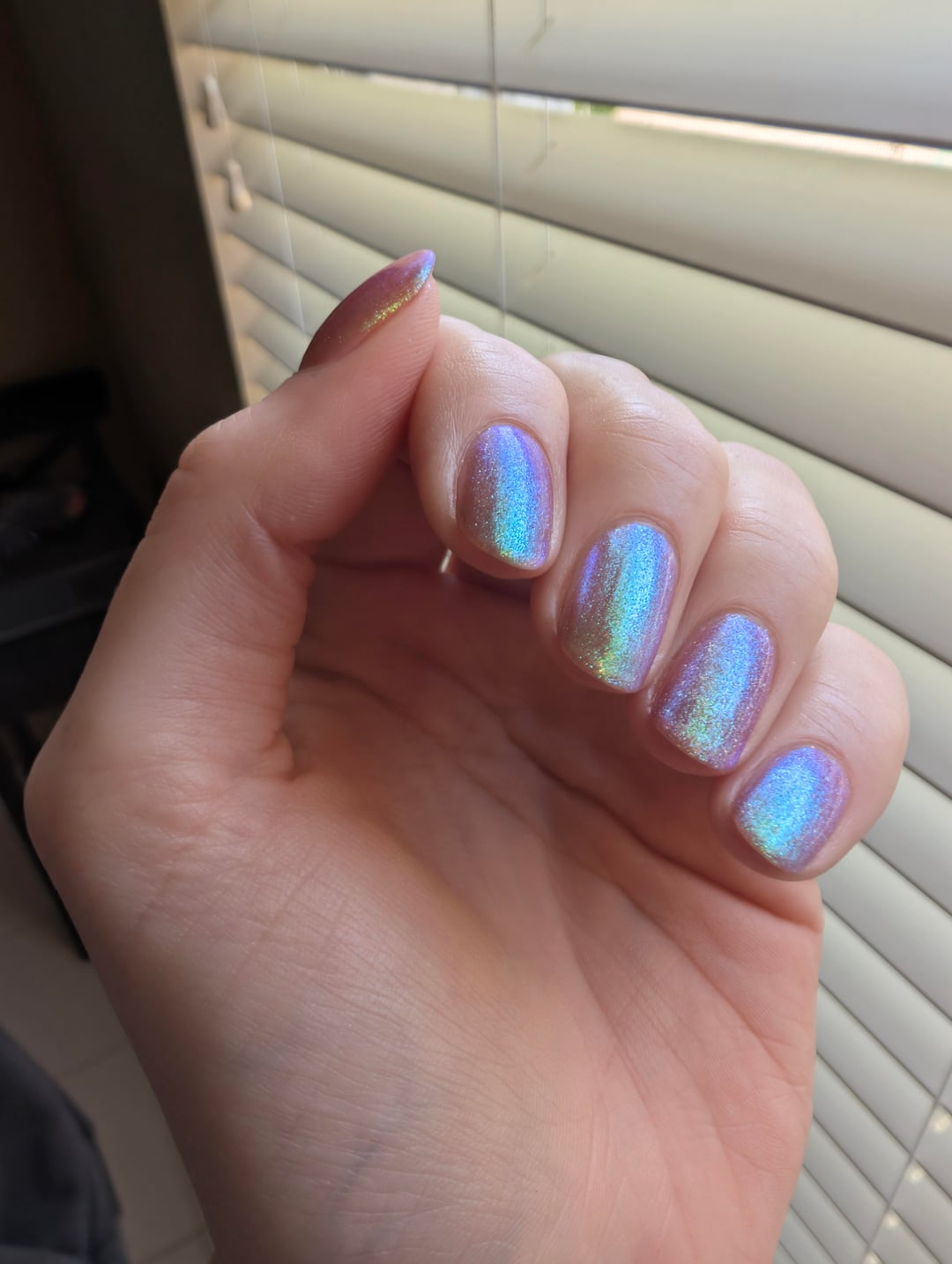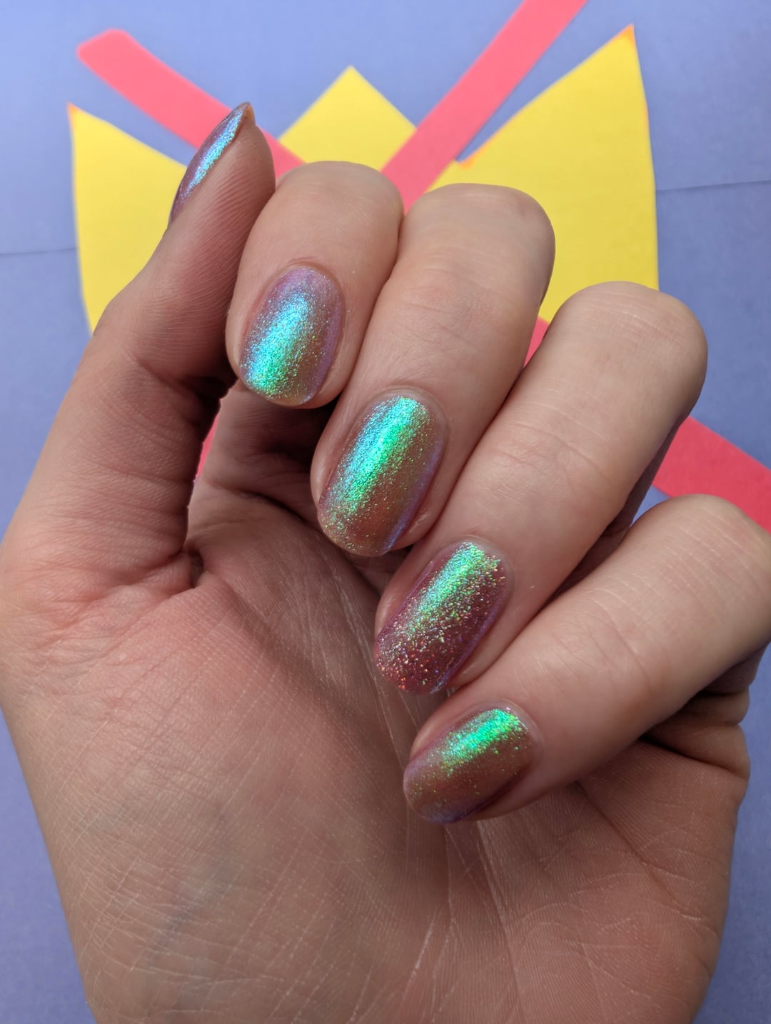thank you to this sub for being a small respite from the world today mani is ethereal either dragon and ilnp pixie party + private rainbow topper on ring finger, and lots of sunscreen making my hands look dried out by LastOKAlternative