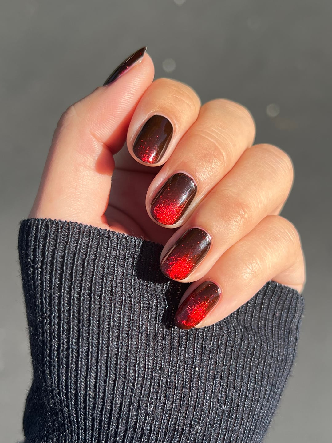 My goal is to match my nails to every concert this year – red & black gradient using an Apple watch charger for Bad Omens 🥰 Base: Essie Strong Start 1x BKL Void 1x Emily de Molly Fiery Attraction Top: Sally Hansen Insta-dri by sherl37