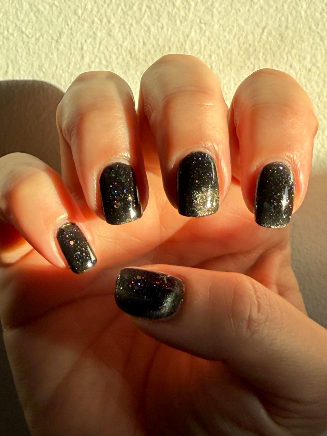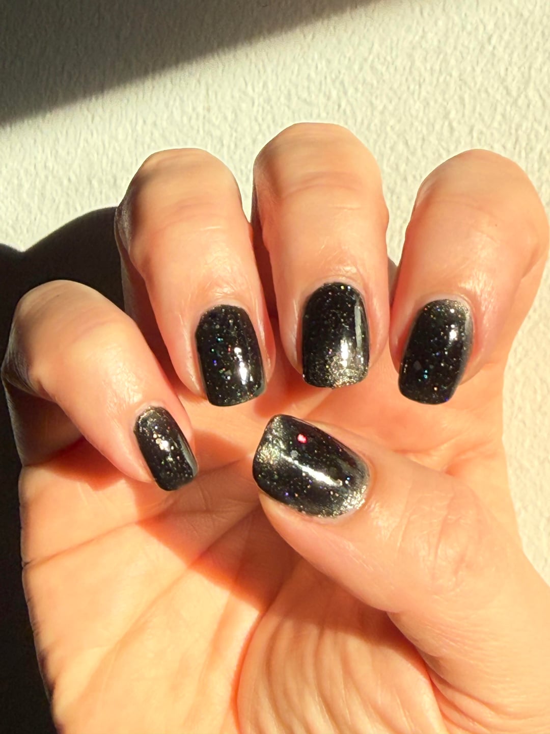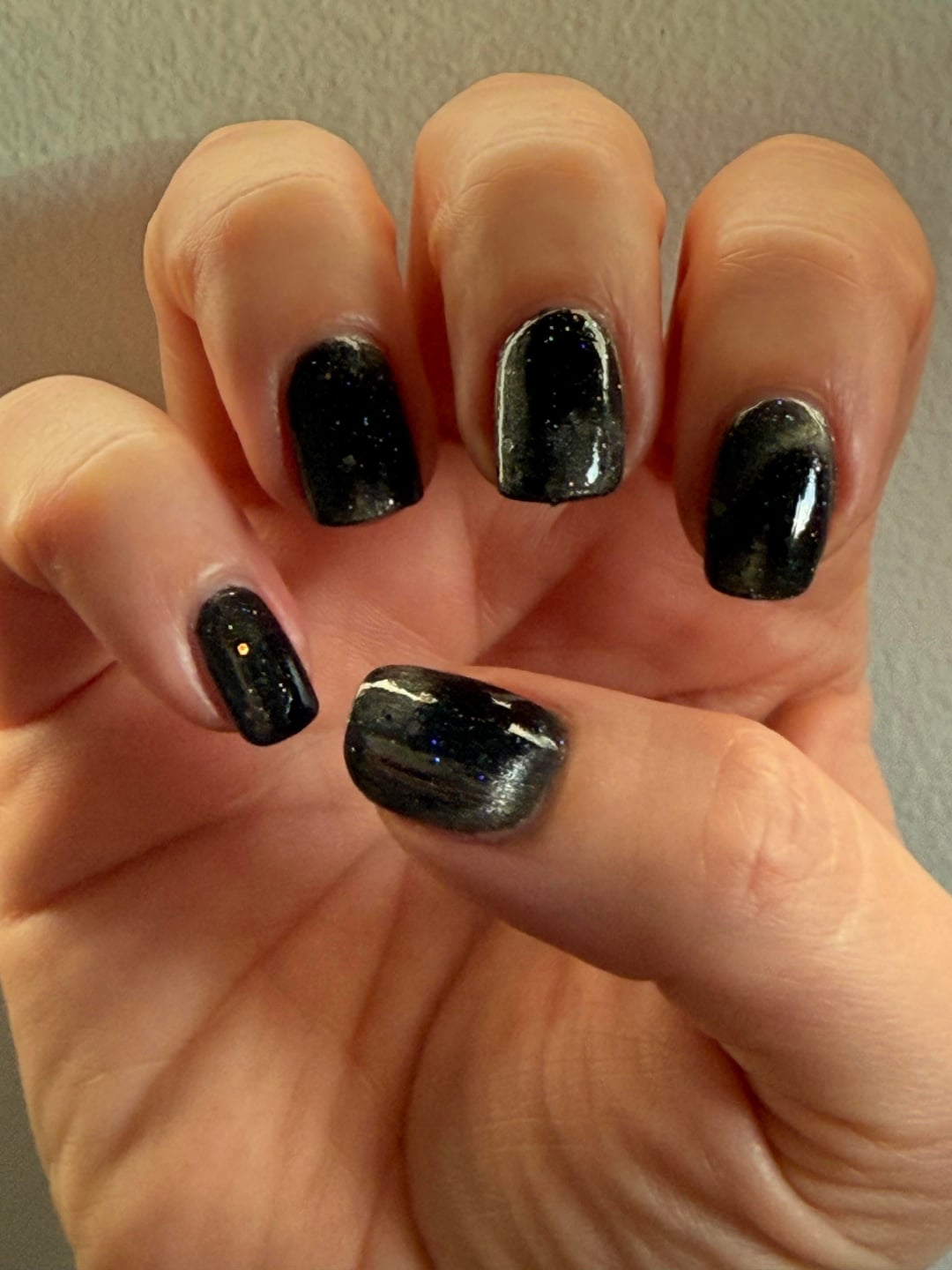 I don’t wear much black polish but love the iconic Deep Field images produced by the Hubble Space Telescope in the mid-90s, when I was a teenager. Opal Theory’s Deep Field was, therefore, the first polish to go in my cart when the Starcrossed collection dropped, just on principle.