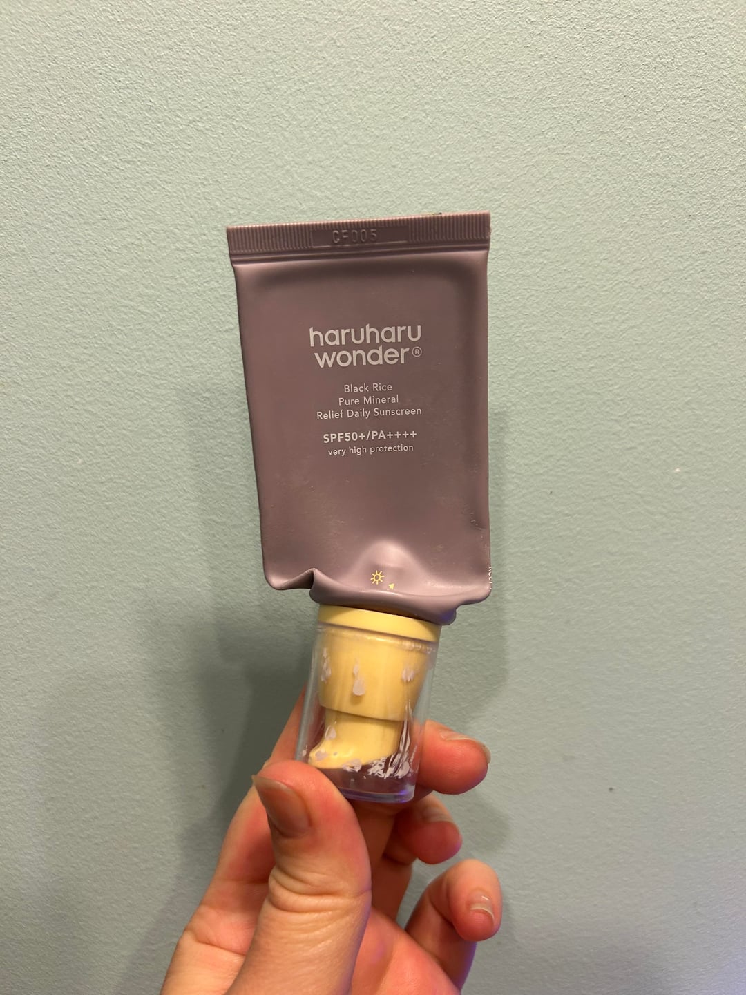 This is the Haruharu Wonder Black Rice Mineral Sunscreen. I started off really liking this as it’s great for oily skin, dries down pretty matte and doesn’t get oily throughout the day. Super nice for underneath makeup as a primer even. However it leaves such a white cast when worn by itself and being that I don’t wear much makeup during the week when working from home but still having to be on camera, it makes my face look so white in comparison to my body.