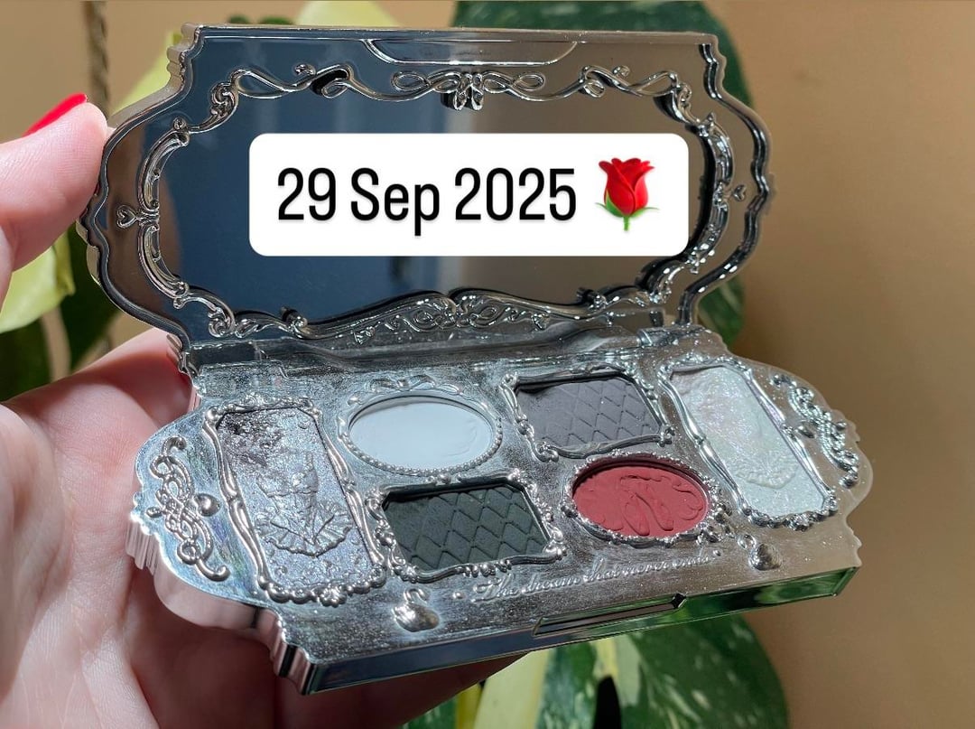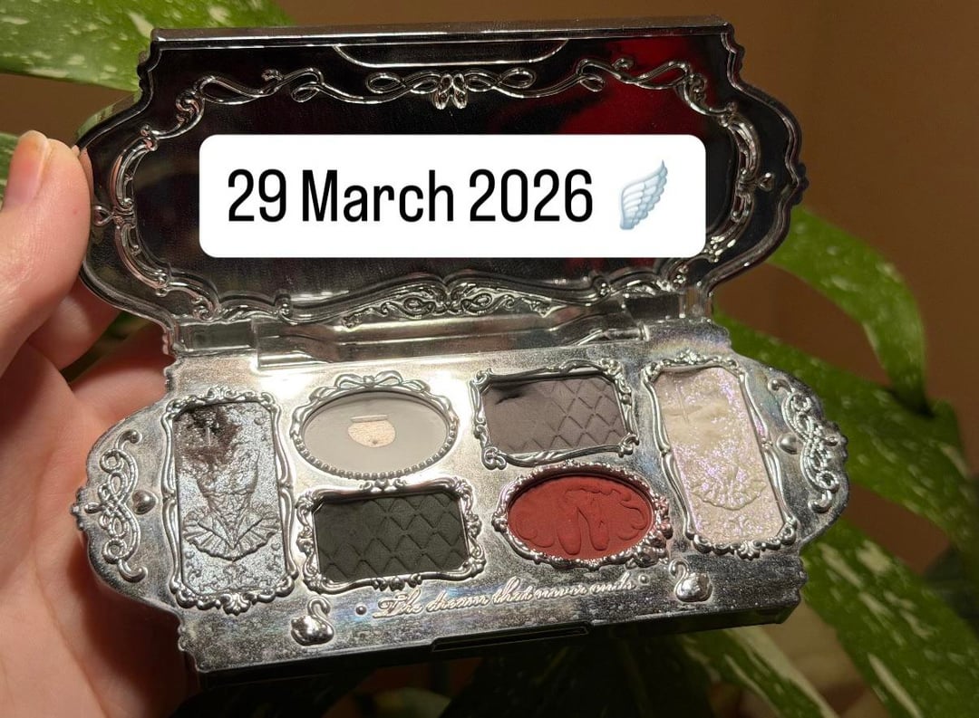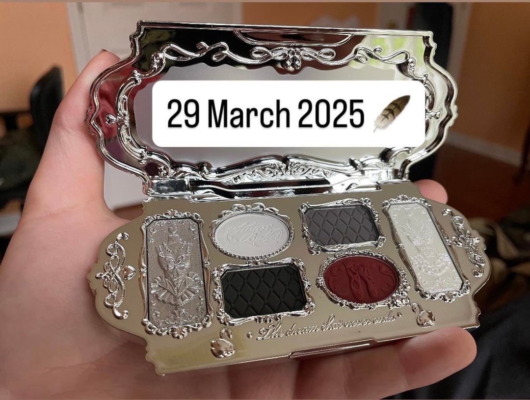 This is Flower Knows' Black Swan eyeshadow palette. It's become the palette I reach for almost daily and is easily the most used makeup product I own. I find the black shade to be the least intimidating of any I've ever tried. All of the matte shades (the middle pans) are pleasantly pigmented; I'm very fair, so anything with too much pigment can easily become muddy on my face. The shimmers are very beautiful, too! The blue-purple shimmer is great with almost any look I do. I tend to wear gold, so the silvery shade on the left doesn't get as used, but I do use it occasionally.