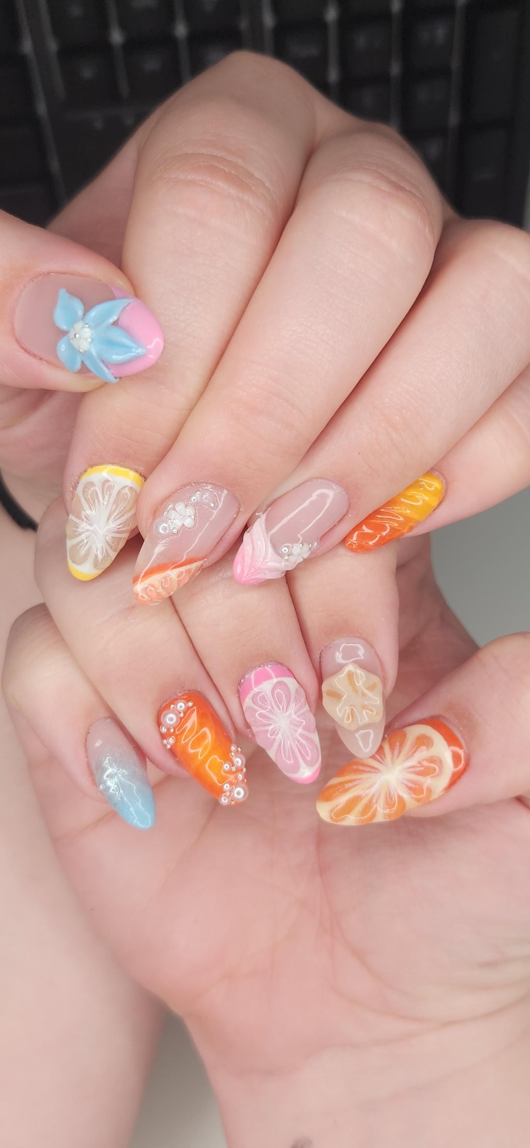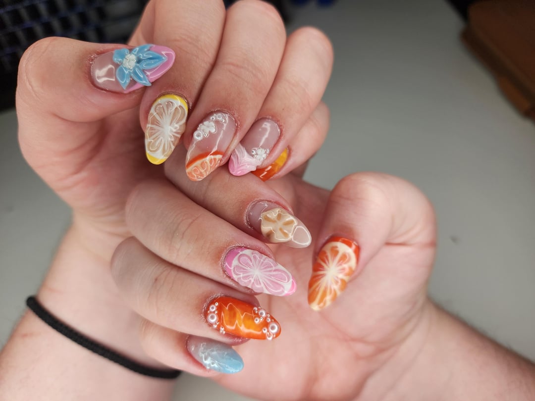 My first time working with sculpting gel, some nails I think I could do again better but loved how this set came out!!! Gel overlay on natural nails by Regular-Celebration6