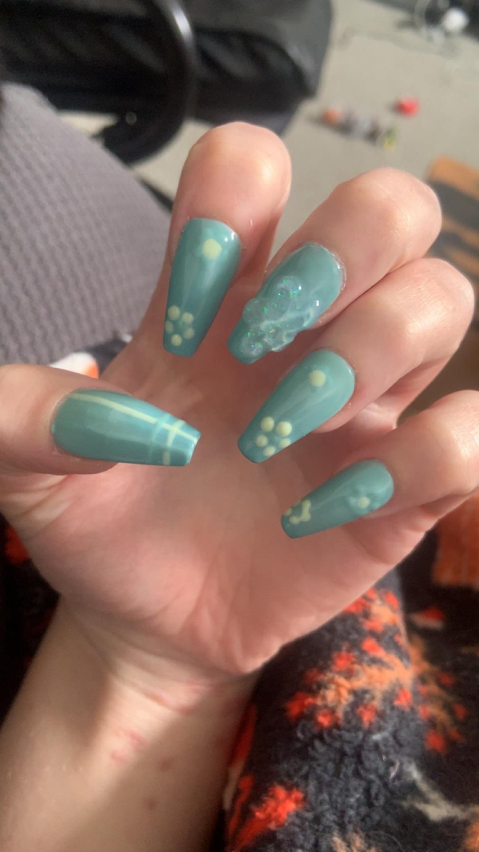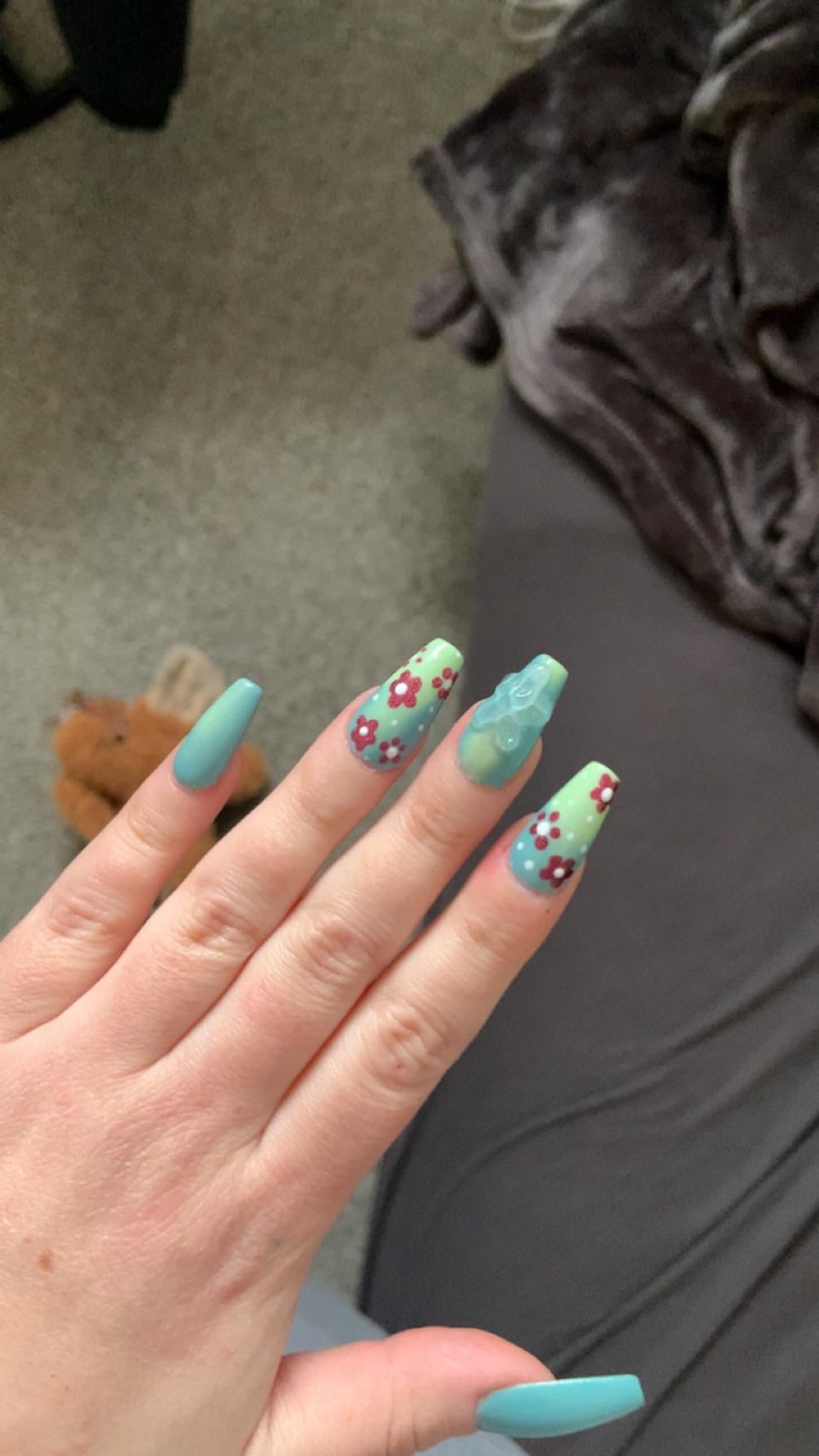 gel-x extensions applied with ASP builder gel as glue. I can normally get at least 1 week retention but I am very hard on my fingertips/hands and pretty weak/thin nails. Retention gets longer with every set I do!