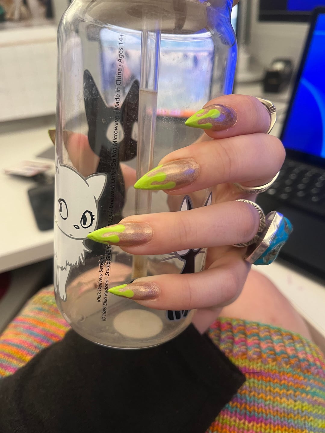 Also am ok with my at home fill and shape lol – finally pointy enough 😈 not perfect but practicing! Mooncat – fake holo (base) Mooncat – highway glow (slime) (Mooncat base and QDTC) by PantheraLutra