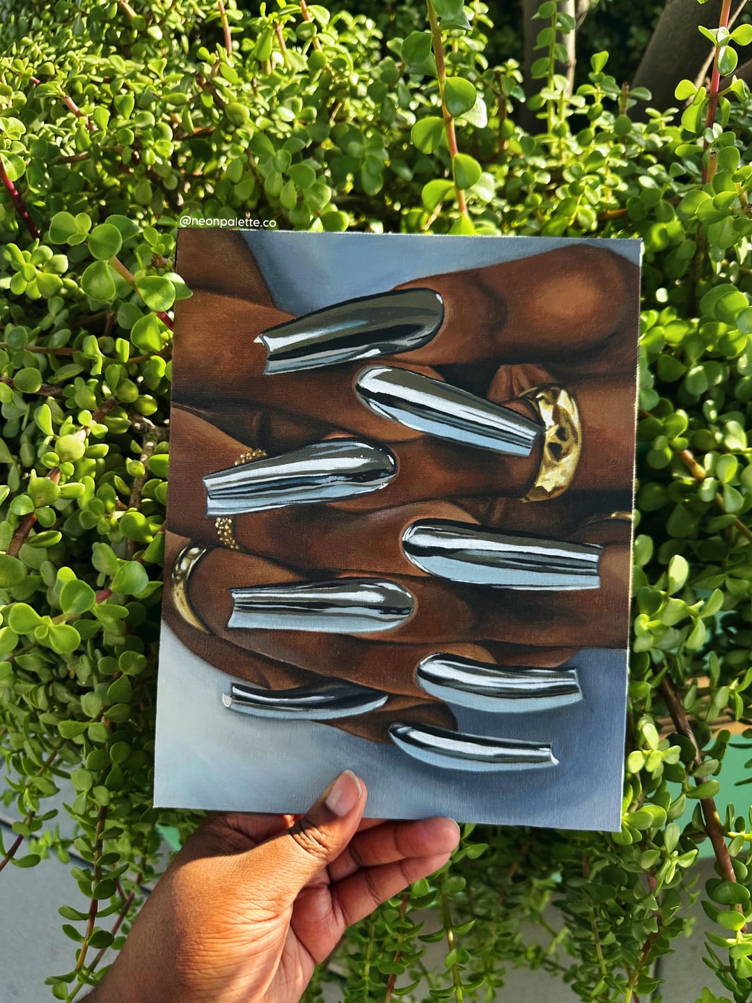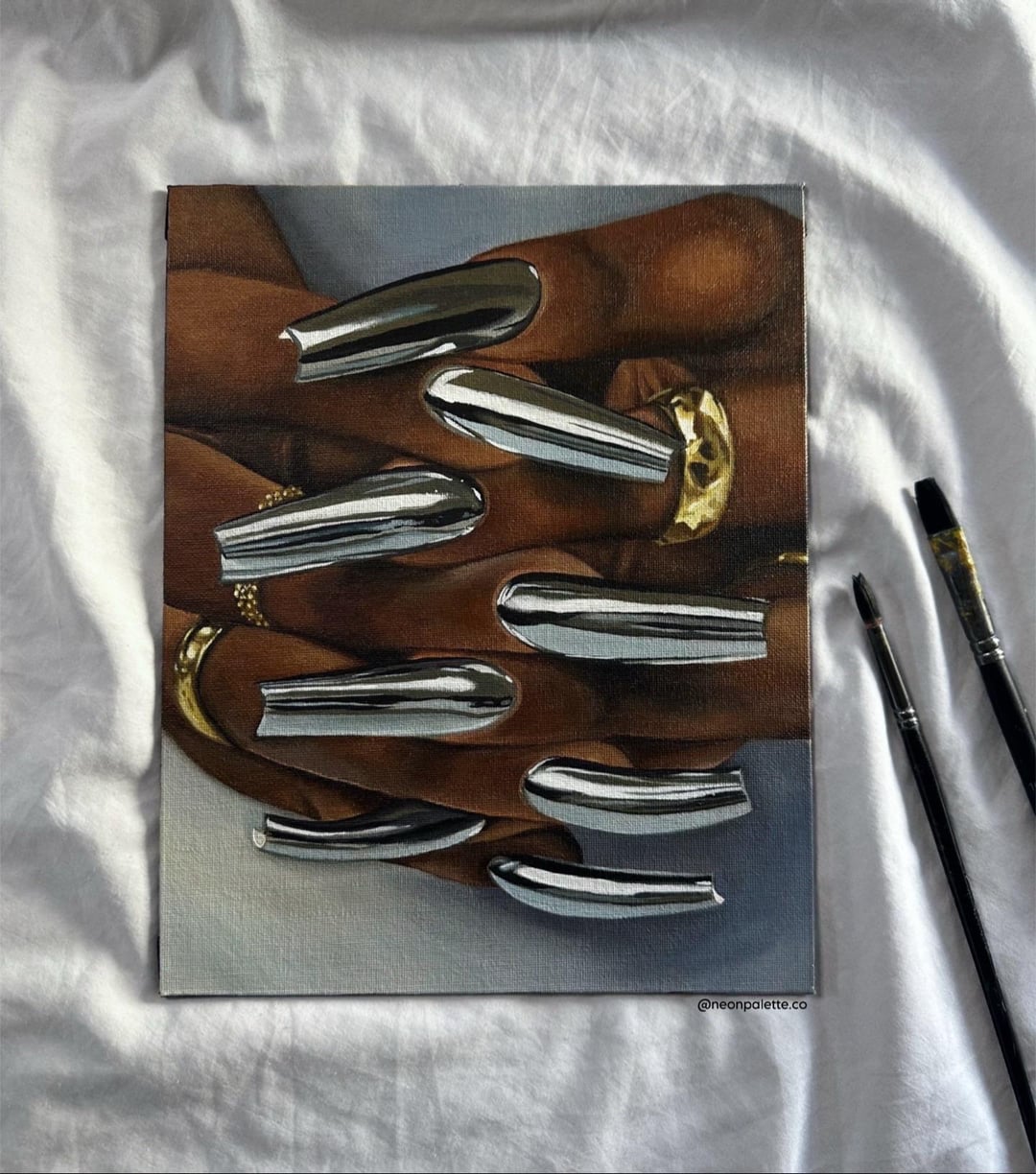 painted these chrome nails to practice my metalwork a while ago! wanted to share!🤍