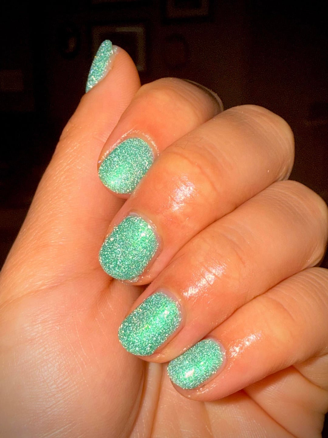 Unfortunately after a few cocktails I decided to try out my cuticle trimmers on my nails.. trying to achieve the coffin shape. Definitely butchered my nails but filed them to an acceptable enough shape in the morning. At least this polish softens the blow a little bit.