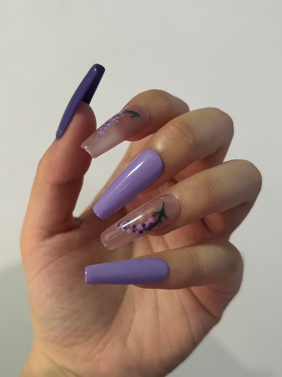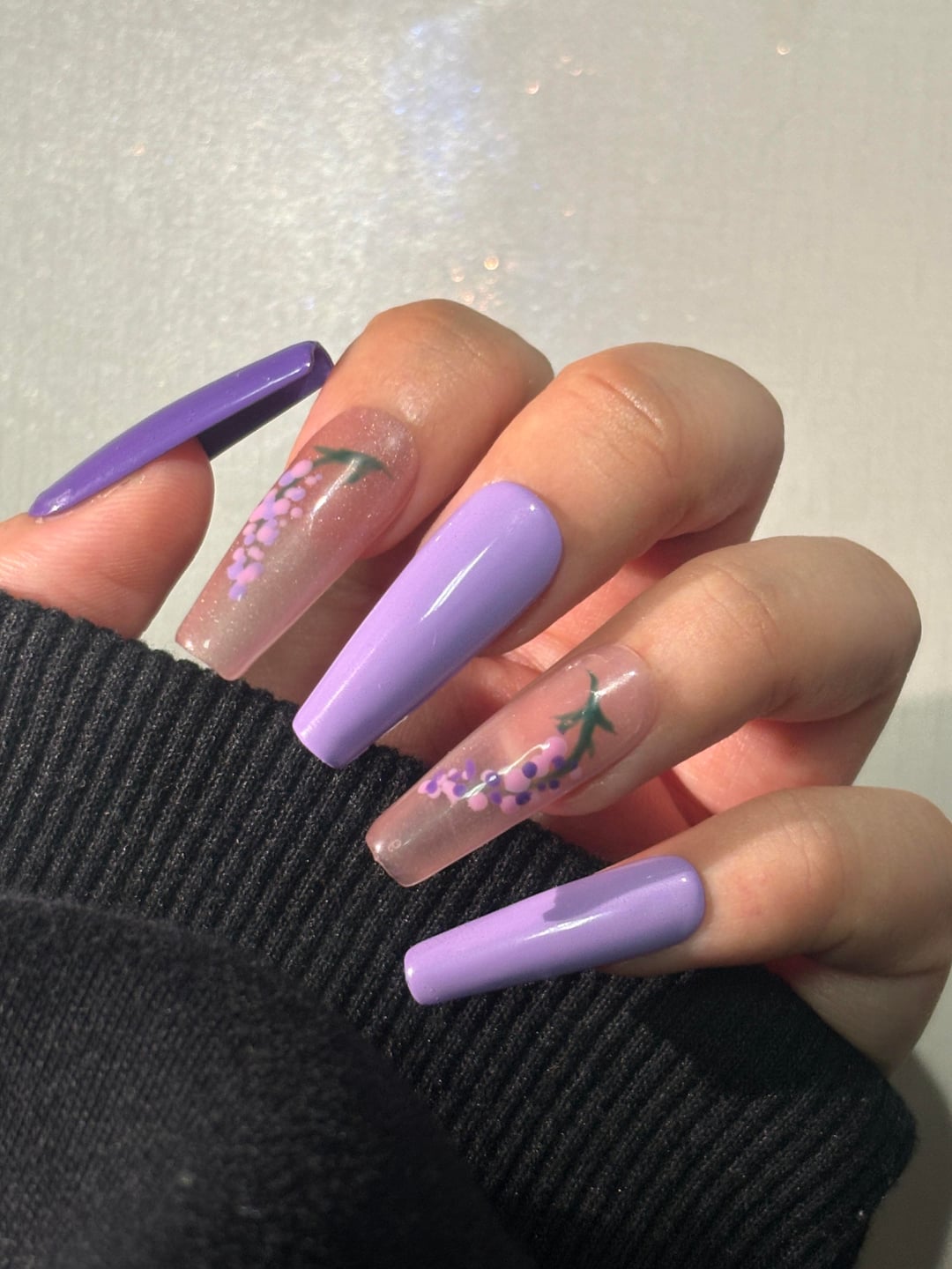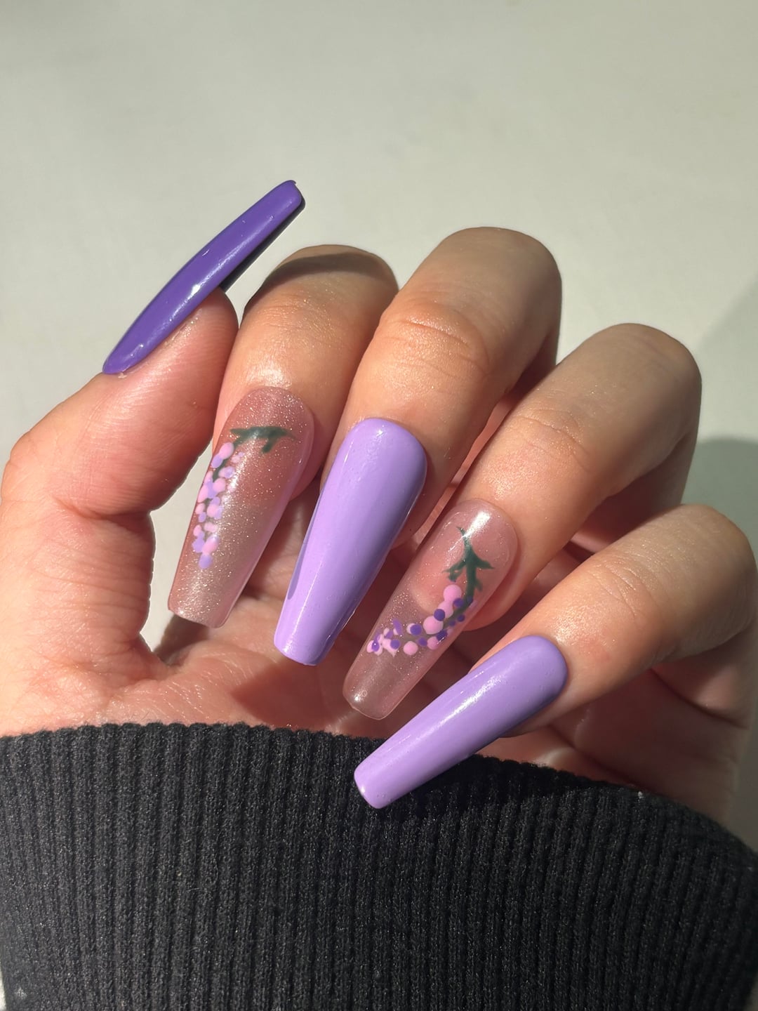 Tried a soft lilac set with floral details on a sheer base. Wanted something simple and delicate.