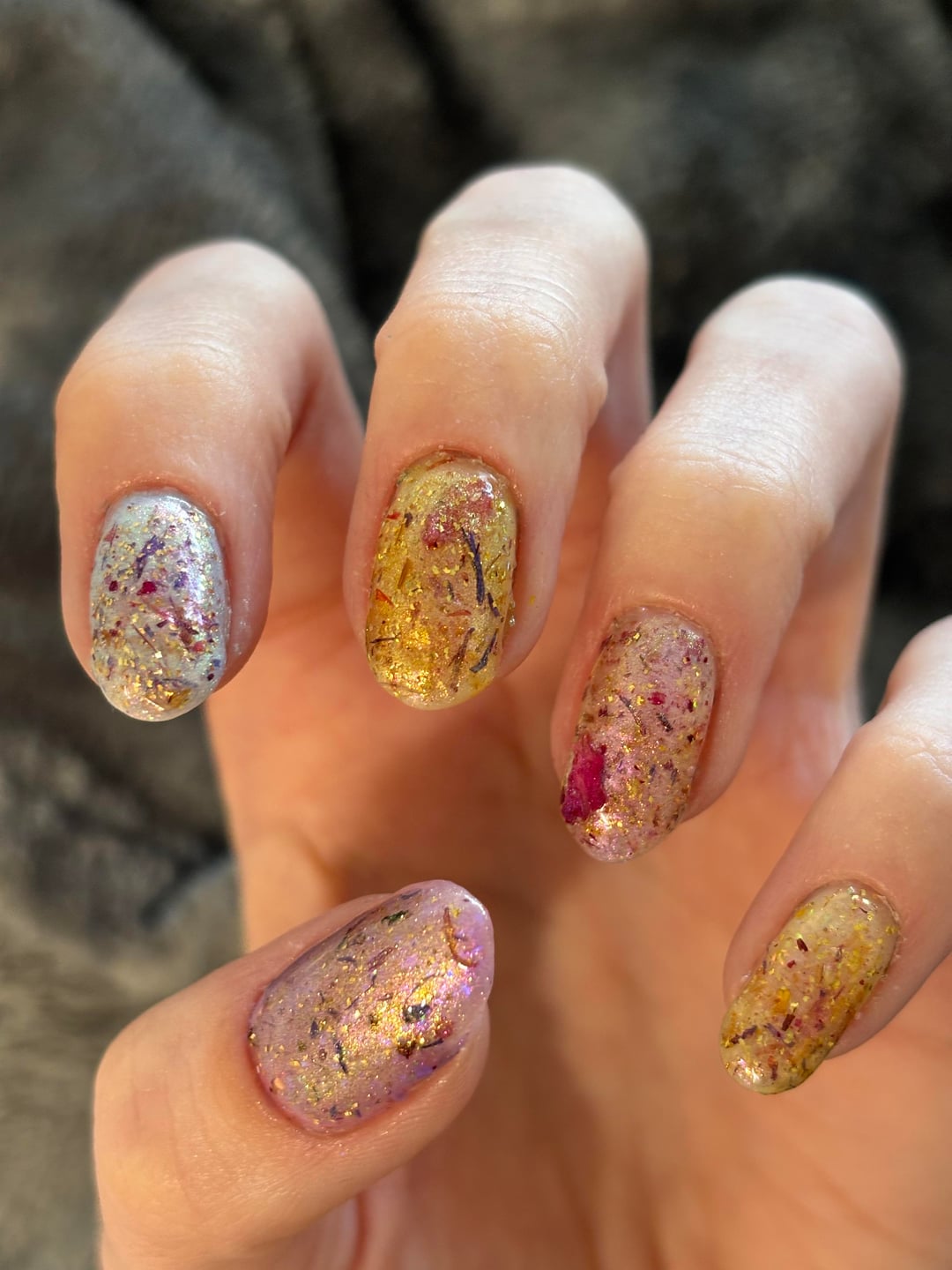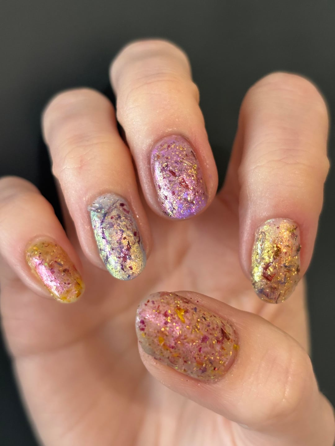 I couldn’t decide which polish to use first from my HOPL haul, so the answer became “most of them,” but if I’m being honest, I don’t remember the order in which I applied everything past the base color I used.