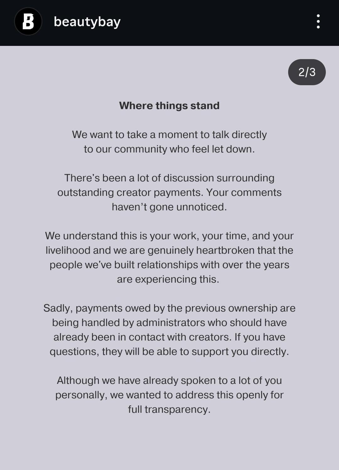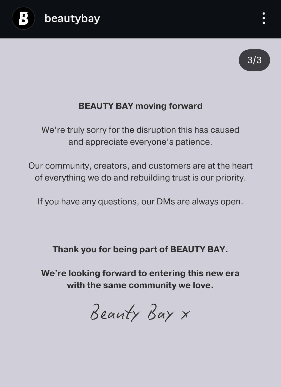 Beauty Bay released a public statement regarding influencers and content creators receiving no payments during their shut down.