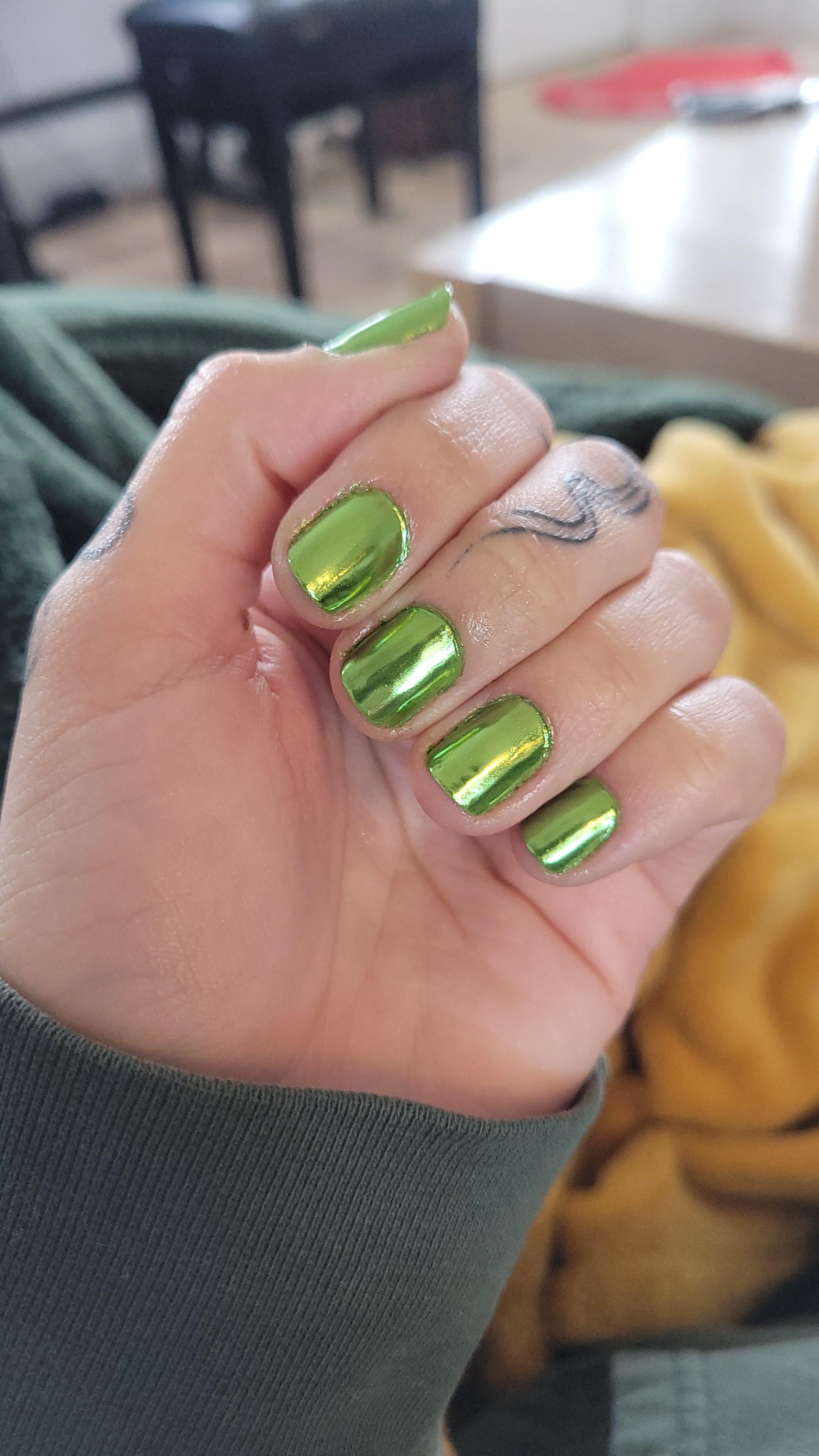one coat Poparazzi QDTC, let it dry for two minutes and then applied chrome powder