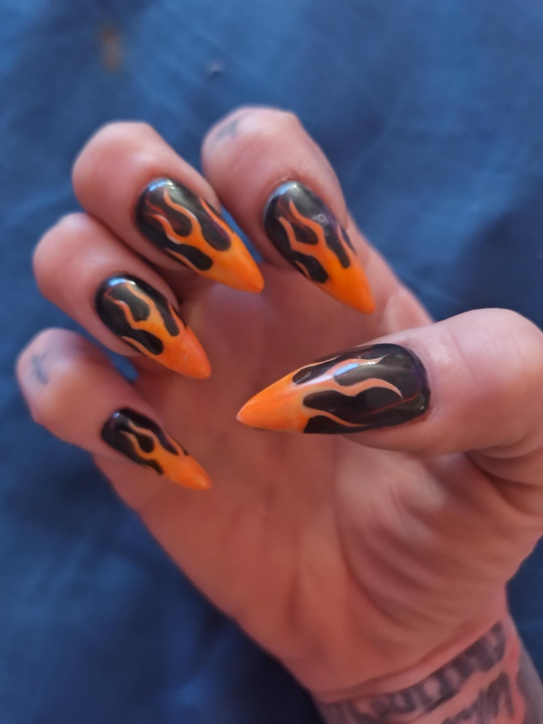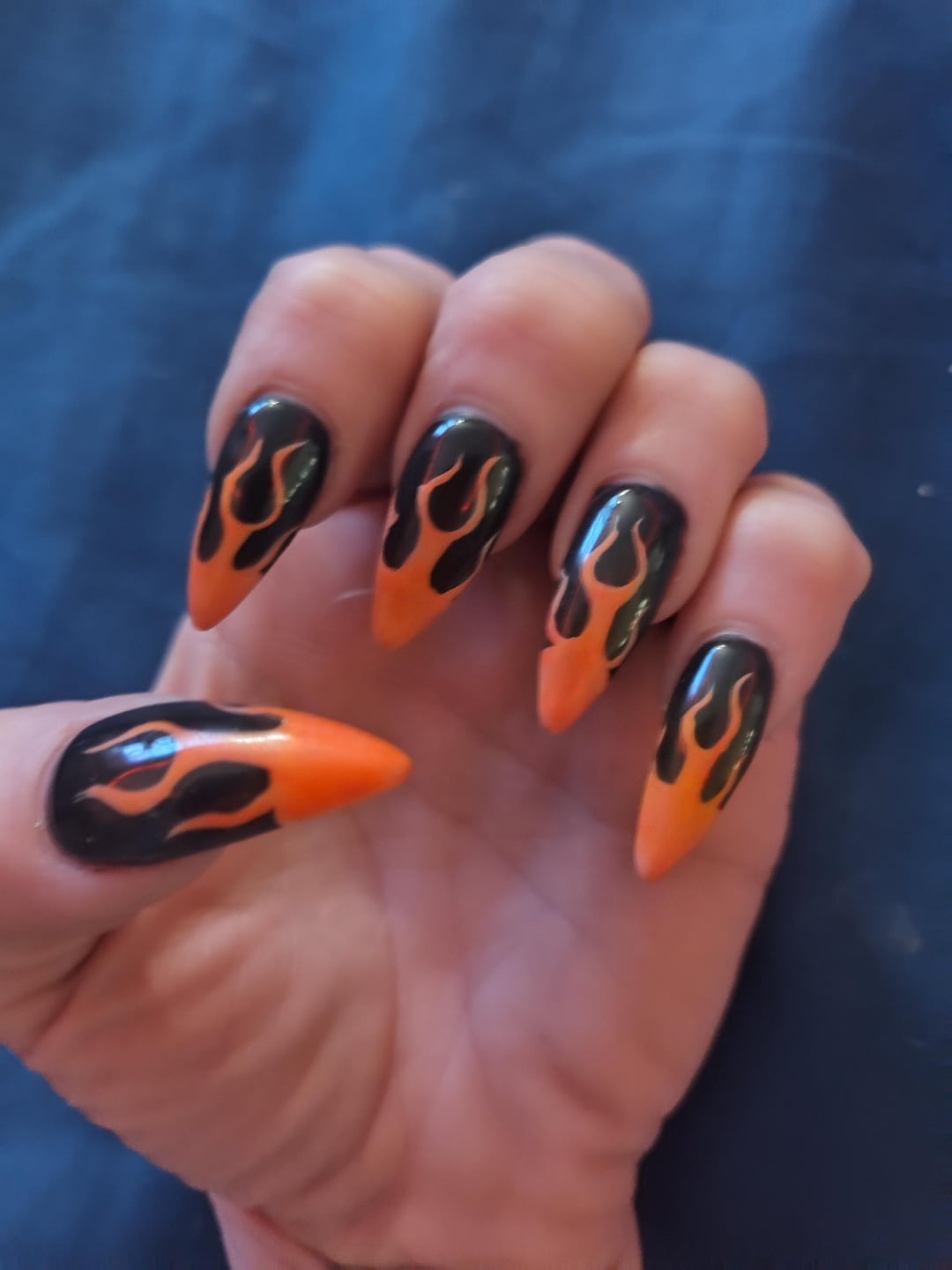 I had my normal nail tech do my nails at Ocean Nails in Huntington West Virginia. Miss Kay really outdid herself this time. it may have taken us twice as long as usual but literally I love them #oceannails #huntingtonwv #MommyMisfit #flamenails #Gothicnails #stilettonails