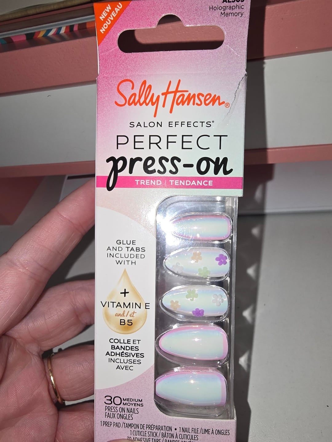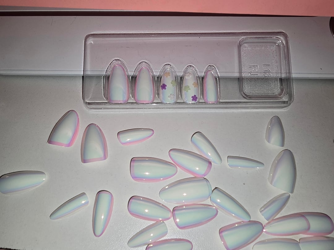 I bought what I thought was a cute set of spring press ons. The only 2 nails in the whole set of 30 that have flowers are in the display and come in 2 different sizes (6 and 8)…so even if you were to use them your accent nails would be different fingers. On top of that, some of the nails don't even have the pink border, which is fine but is not known from the display. I'm not new to nails or press ons, but have never bought Sally Hansen press ons before (definitely purchased many other products of theirs without disappointment) so this is a real bummer.