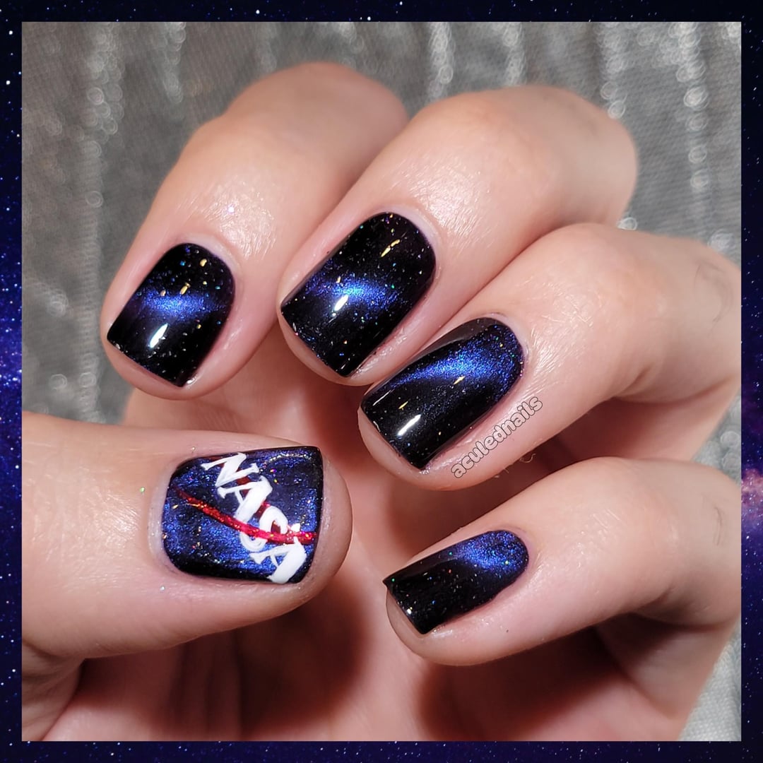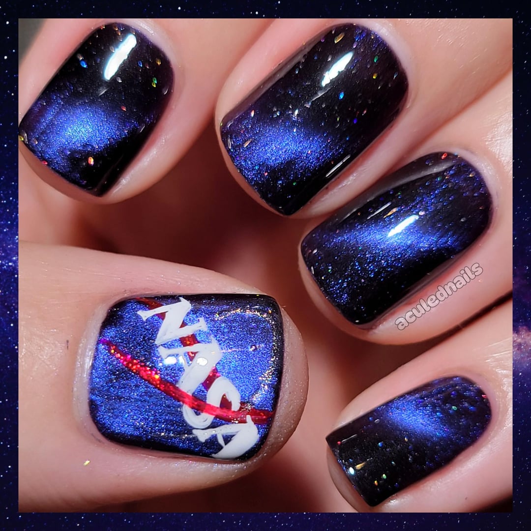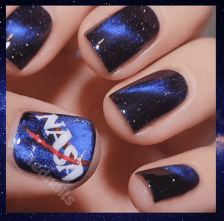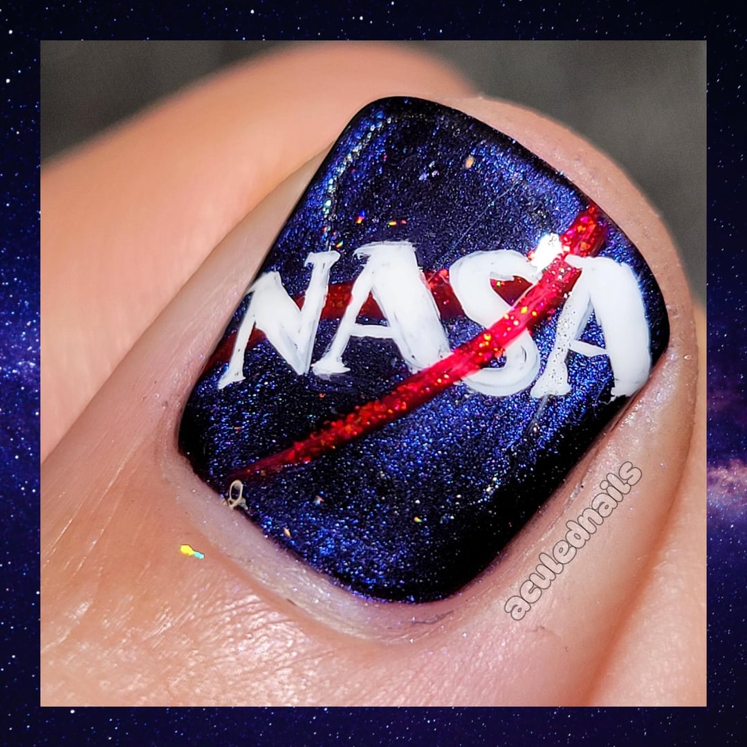 Yesterday, NASA made history with the first manned lunar flight in over 50 years. I was excited to watch, but I didn't expect to be as emotional as I was seeing history be made. It was so refreshing again to see SCIENCE take the lead… hopeful, positive, intelligent people speaking and leading. Progress and advancement, teamwork and cooperation. It was a joyous release. I immediately painted. It was kinda hard when my eyes were welling up during launch, but I needed to get space nails on me IMMEDIATELY. You know it's important when the thu.b gets called in for duty 😝👍