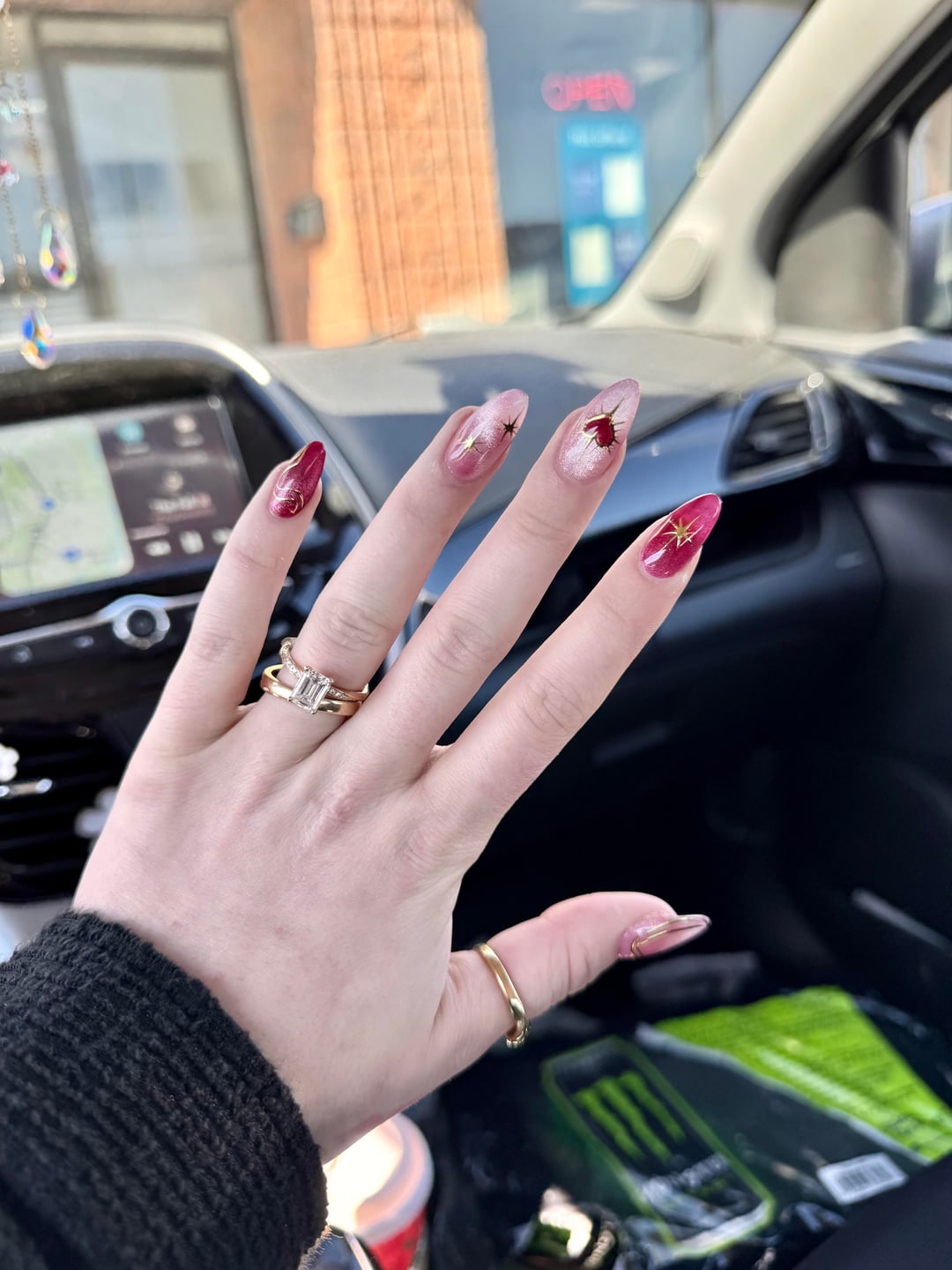 so so happy with the cat eye and nail art i have right now!! my nail tech is an Artist!!!