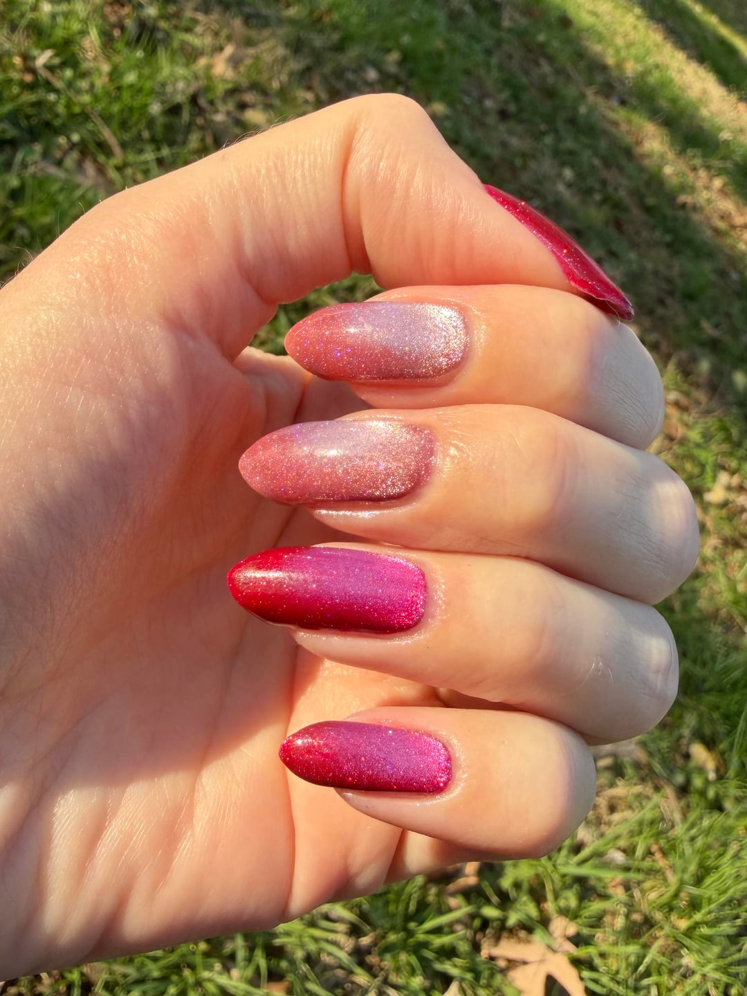 I really love the way this nail polish just *flashes* in the sunlight! It even looks bright and lit-from-within in low light too.