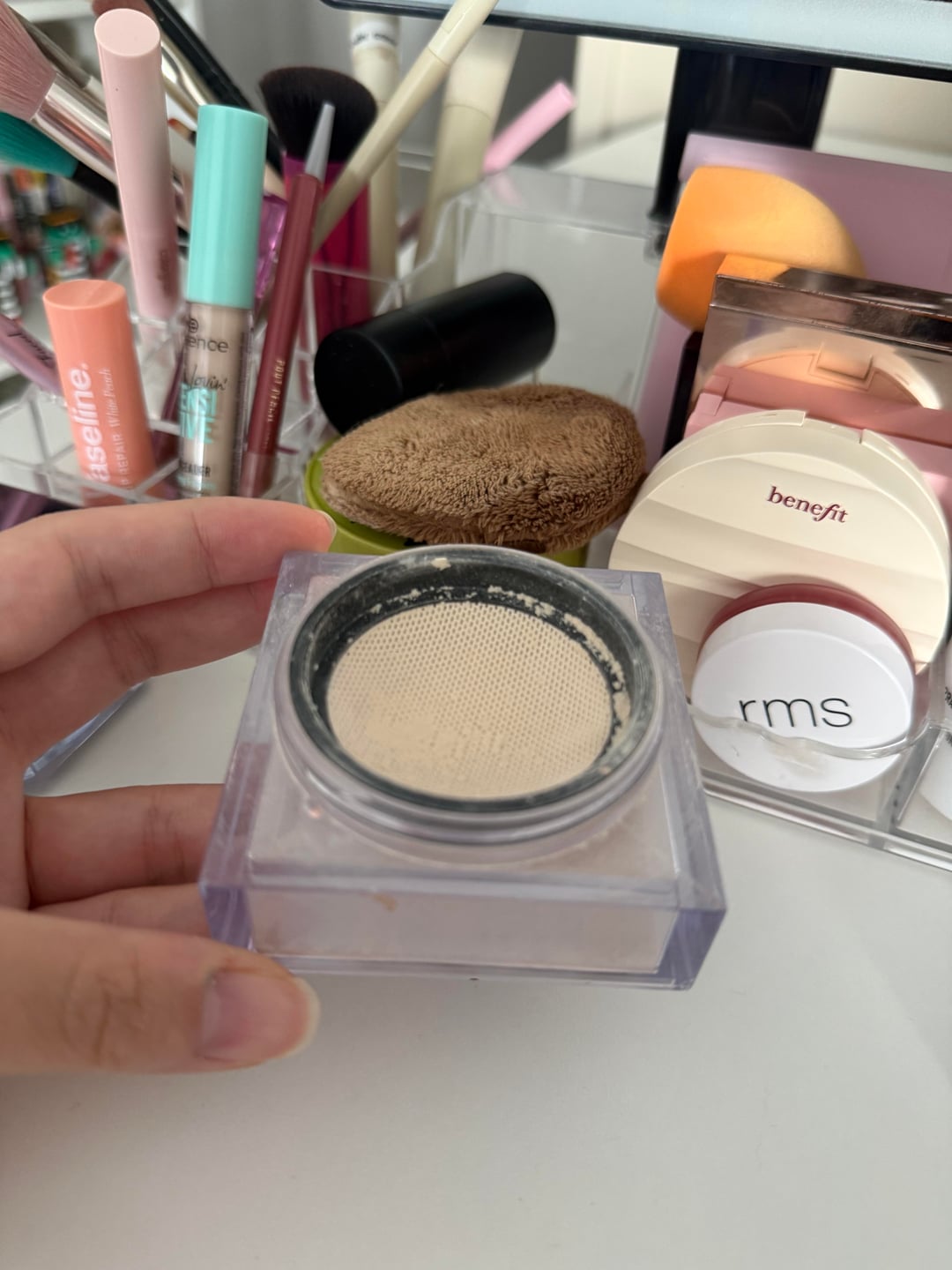my holy grail. i originally bought the cherry blossom, finished it ages ago and refilled it with the pound cake from a mini. so 20+ 6 grams in total. there’s only a tiny bit in there that i can’t get out. replaced with urban decay all nighter loose powder