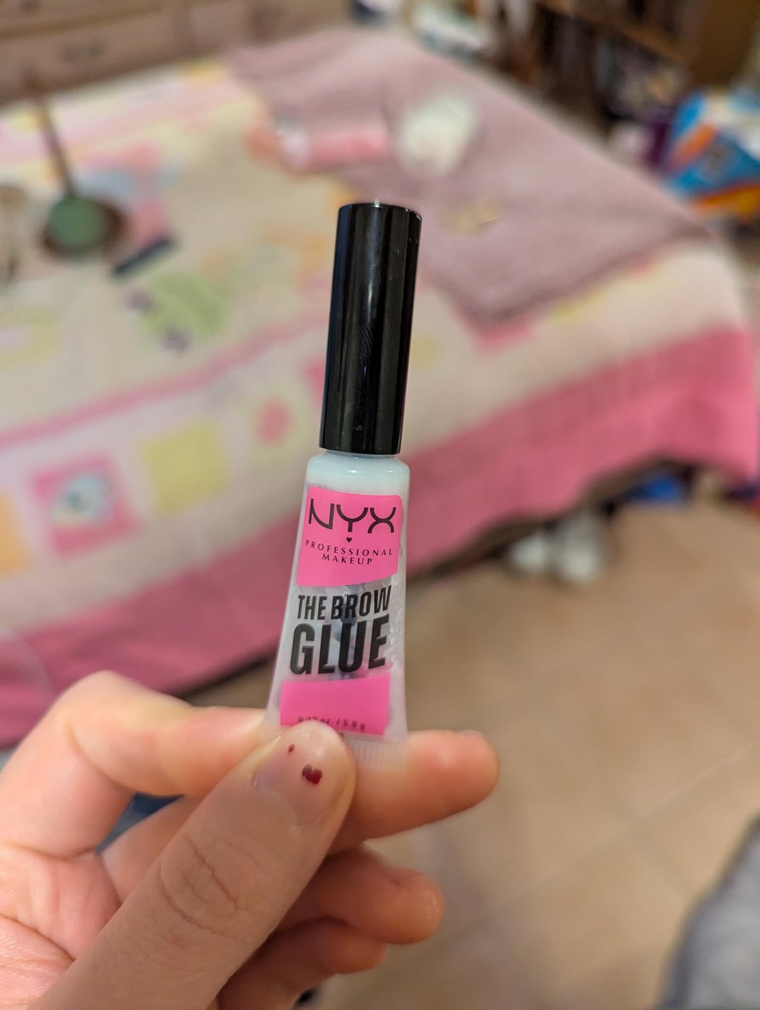 -Nyx The Brow Glue. Love this stuff. I have really unruly brows and it lays them down!