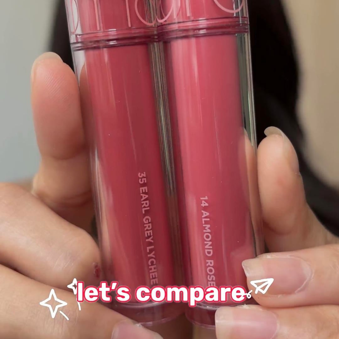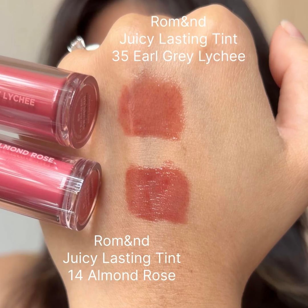 Hey y’all, today I compared Rom&nd Juicy Lasting Tints 35 Earl Grey Lychee and 14 Almond Rose on my light medium warm skin tone.
