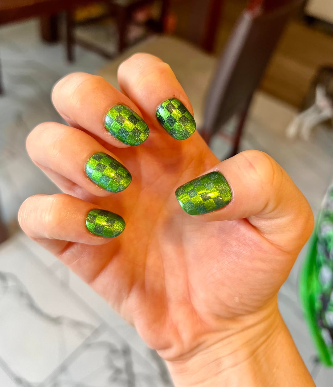 KeyComprehensive8667 on April 3, 2026 9:59 pm https://preview.redd.it/sfzkuyn3s1tg1.jpeg?width=221&format=pjpg&auto=webp&s=6ffde4742f52858a606425570c9b28b3cc0614a1 At first I thought they were Minecraft creeper nails, but I like the technique. Is it striped matte topcoat or another technique?