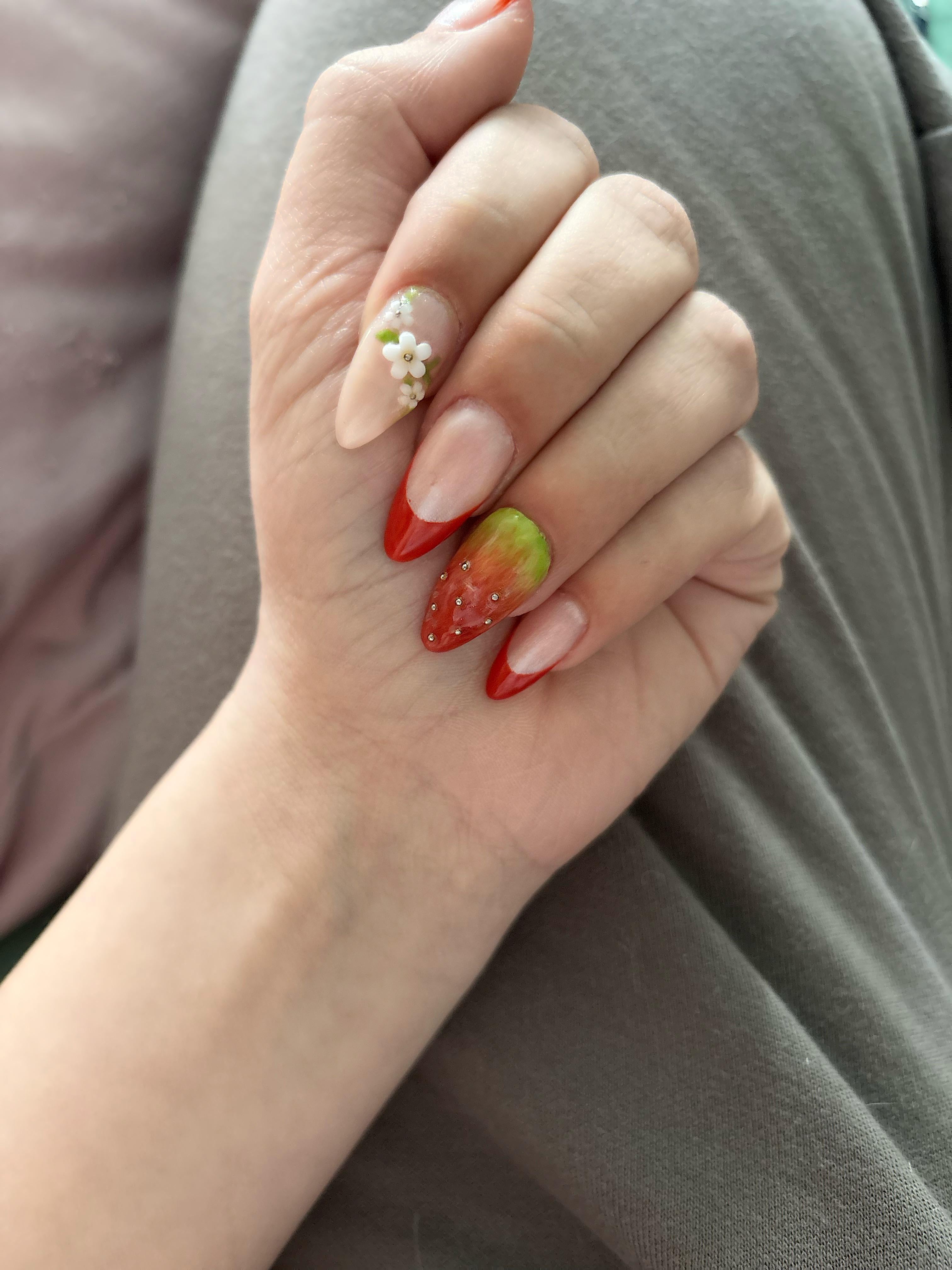 unicornapocalypse_ on April 3, 2026 11:43 pm I thought it was watermelon at first, but they are absolutely gorgeous! Love the little flowers, they definitely fit with the berry theme.
