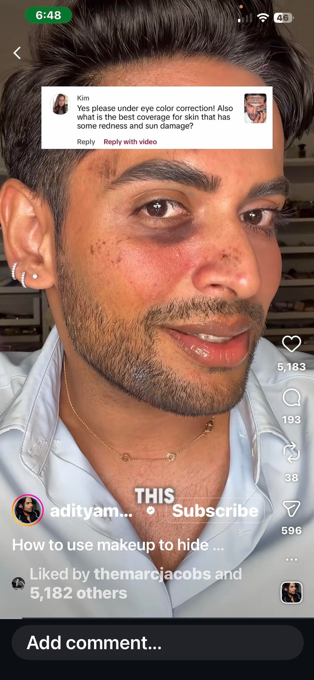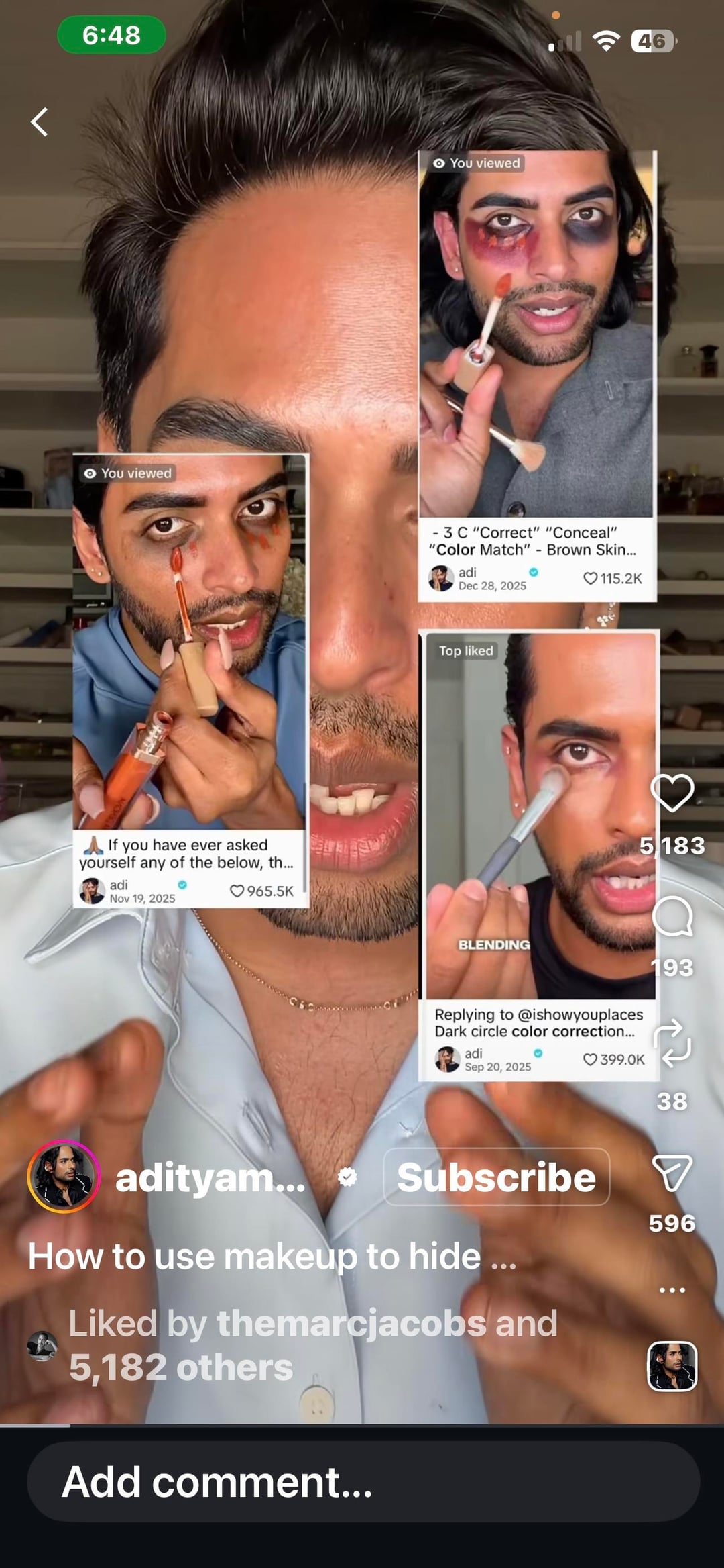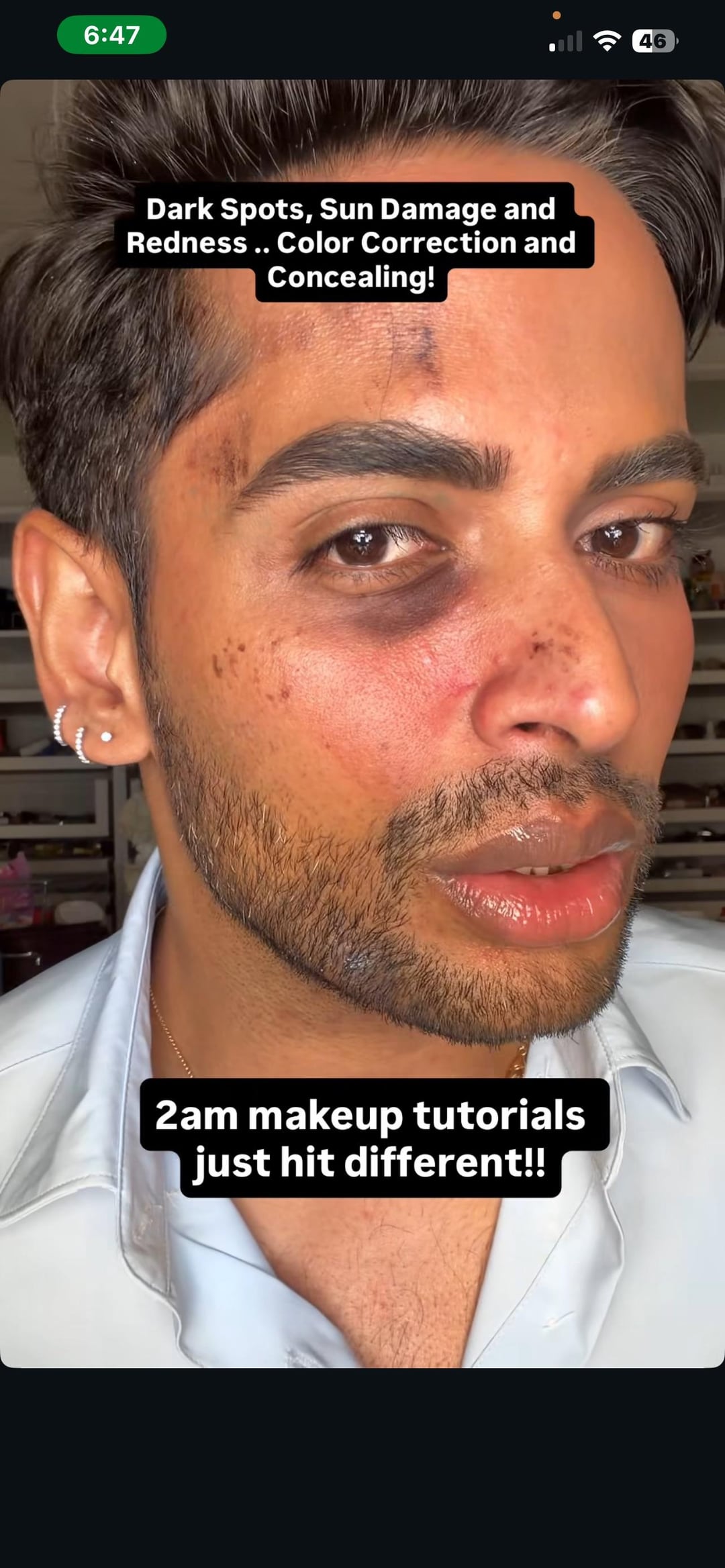 He’s done this a few times before, creating fake hyperpigmentation to show how to cover it (which is weird because covering makeup with makeup is not the same as covering skin discoloration), but this looks like he’s been battered and bruised, all to promote a concealer tutorial. This is weird, right? These are screen shots from his story it was shocking to me to see him in this state only to find out it’s just makeup.