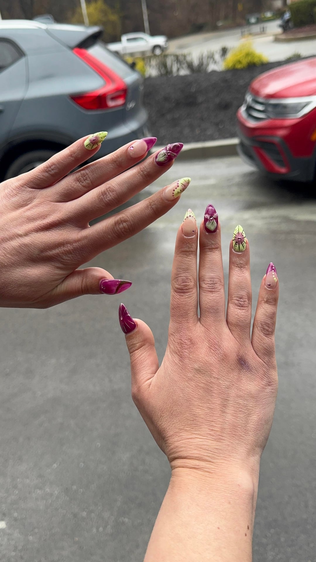 So I’m actually really proud of my work and how far I’ve come as an artist to be able to take inspiration pictures not of nails or just a vibe so to speak but I guess my question is how do I formulate nails that translate into a cohesive set. I just always run into that one or two nails that I have no idea what to do with and I feel like if I had some sort of formula I would be able to function better within a reasonable timeframe. I’m a little bit OCD, but I guess every nail tech is however, I just feel like my art is on the edge of greatness, but I’m just not quite there yet. I know photos are a big thing, but also the fluidity of the set . It’s very difficult within a short amount of time to execute a set I’m 100% happy with. My brain works like I need to have a focal point on each hand, whether that’s one or two nails along with some variation of texture or a fun French. I don’t know how to articulate this…which is half of my problem lol but I welcome any advice if I’m even making sense😂. But yes, I was very proud of these so please be kind😁