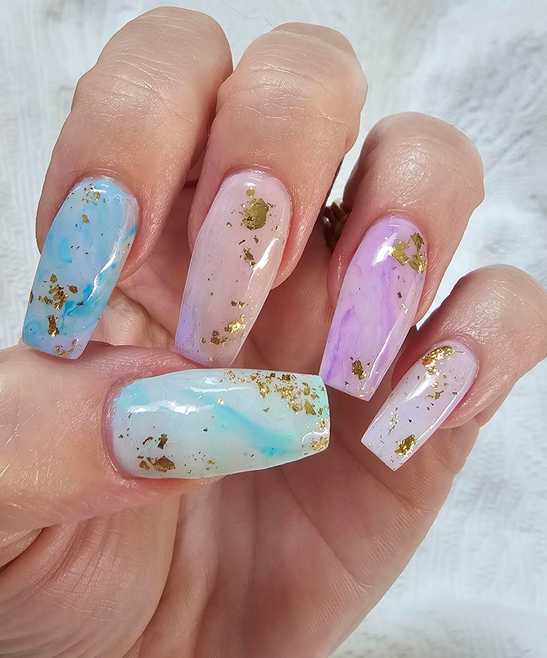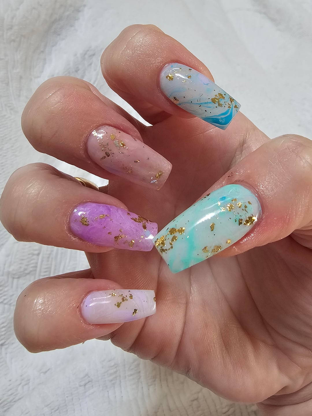 Wanted some subtle marbled nails to remind me of the swirly Easter eggs I used to make as a kid. Done by Olivia at Her Nails Bar in Longwood, FL by Leinistar