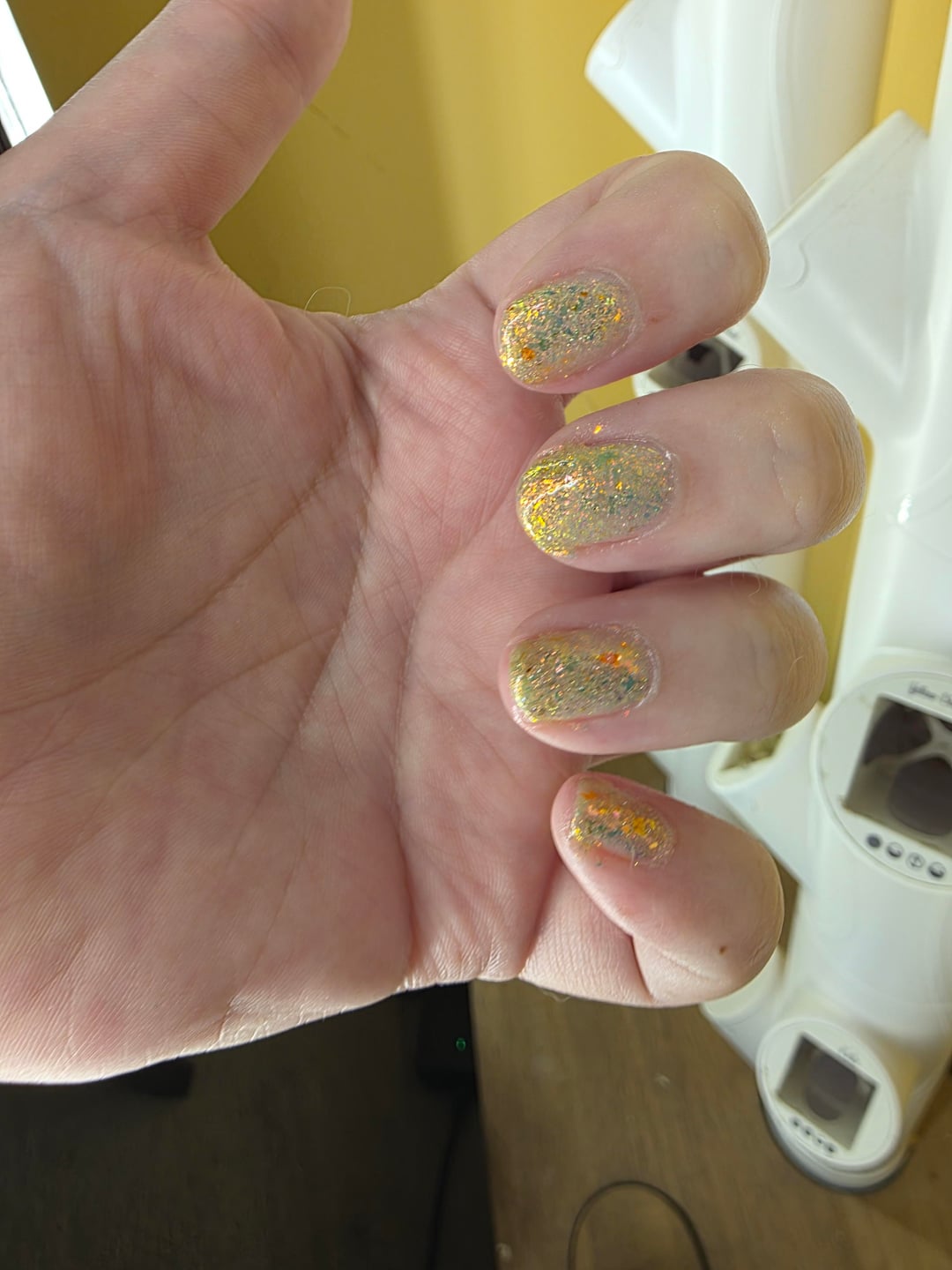 I have a lot of health problems, but I'm determined to start wearing my polishes. Orly Peel off base 3 coats Monarch Moon Child 2 coats Essie Gel Setter top coat by scottishwhisky
